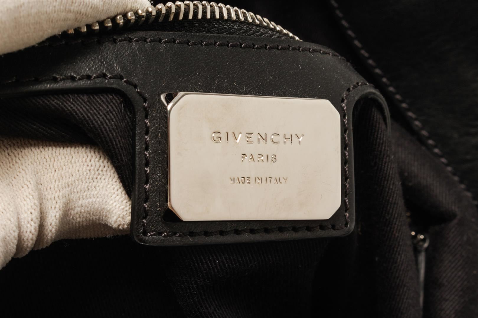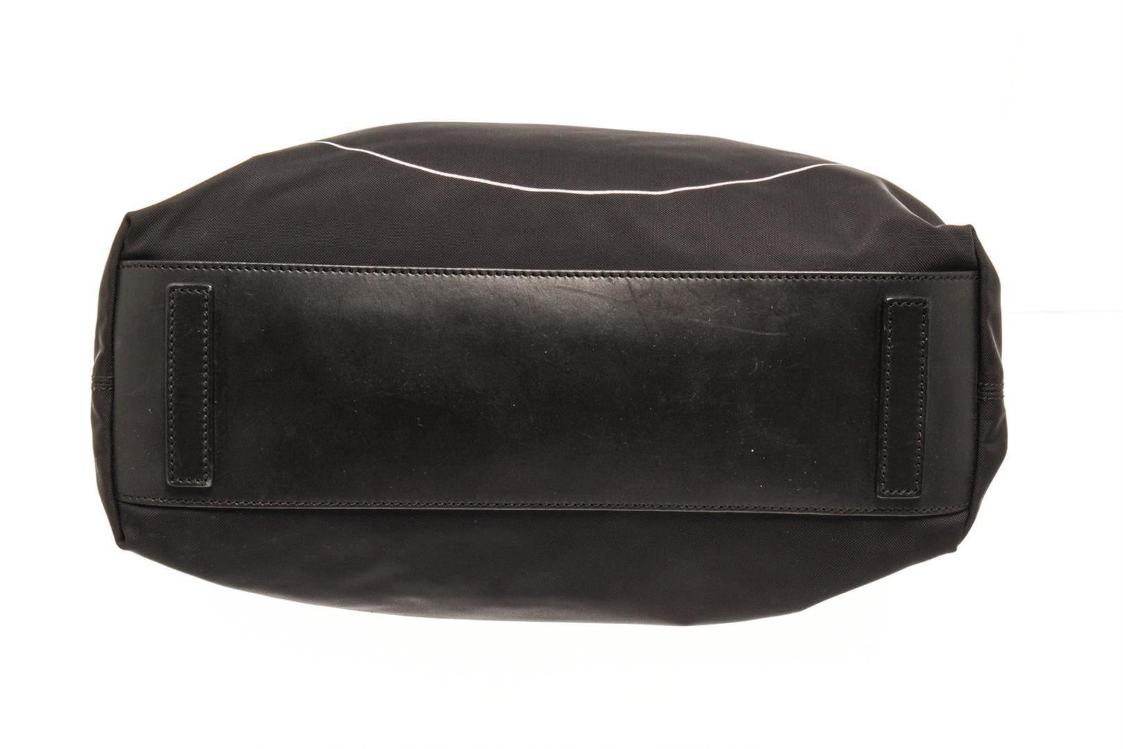 Givenchy Black Nylon Nightingale Monkey Brothers Satchel Bag. All available information is listed in the description and shown in the photos. givenchy black nylon nightingale monkey brothers satchel bag with this satchel features a printed nylon body, a flat leather handle, a detachable flat leather strap, a top zip closure, and interior zip and slip pockets. Height: 18.1" Width: 15" Depth: 5.5, Handle Drop: 7.1" / 45.97 x 38.1 x 13.97 Cm