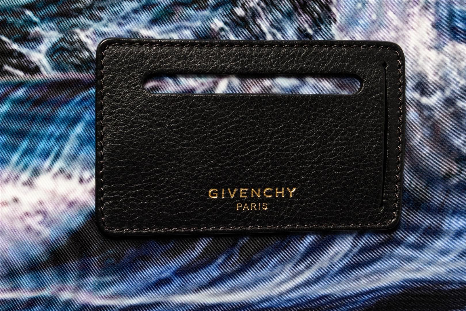 One Givenchy Printed Beach Canvas Pocket Backpack. Item is sold AS-IS. All available information is listed in the description and shown in the photo. Givenchy Printed Beach Canvas Pocket Backpack features black canvas interior, silver toned hardware, two exterior pockets, black leather top handle and two dual straps.