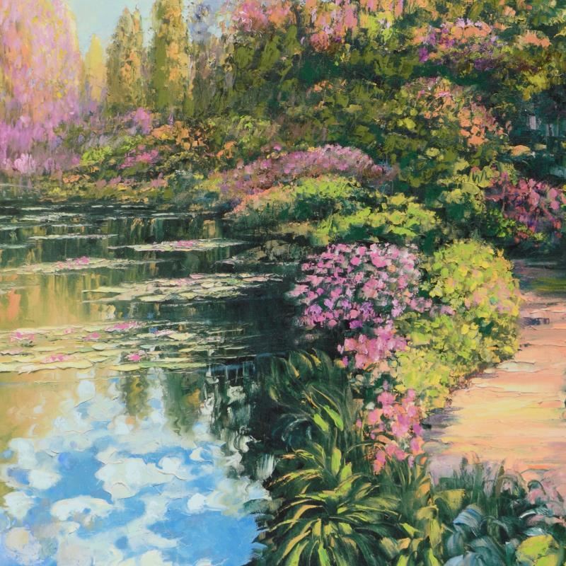 "Giverny Path" is a limited edition giclee on canvas by Howard Behrens (1933-2014), numbered and bearing the authorized signature of the artist. This piece is from Behrens' Legacy Edition. Includes Certificate of Authenticity. Measures approx. 32" x 24" (image). This item requires special handling and may have a longer than usual turnaround.