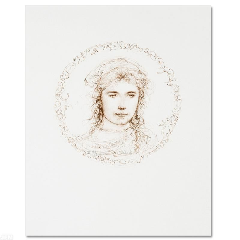 Wild lines and muted colors make Edna Hibels art stand out in any room. "Gloria" is a limited edition lithograph on paper numbered and hand signed by Hibel. Includes Certificate of Authenticity! Measures approx. 18" x 22" (with border) 10.5" x 10.5" (image).