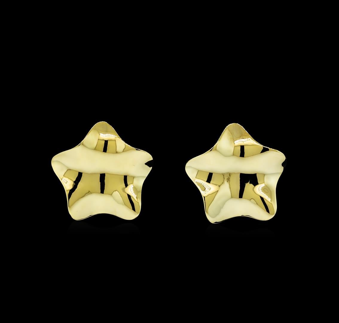 High end designer jewelry. Glossy Star Shaped Post Earrings - Gold Plated. Gold Plated Stud Set. Gold. 1inch.