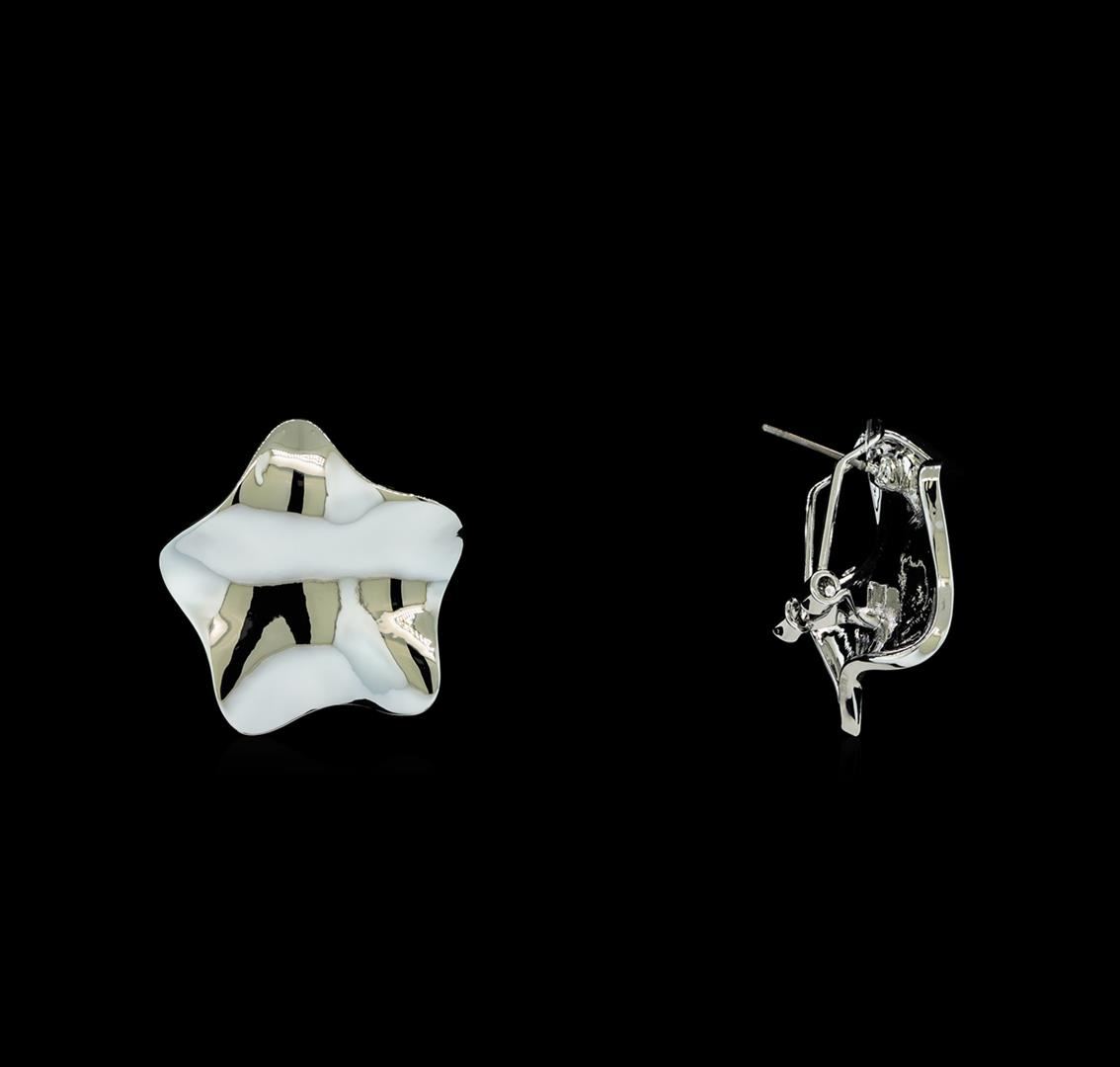 High end designer jewelry. Glossy Star Shaped Post Earrings - Rhodium Plated. Rhodium Plated Stud Set. Silver. 1inch.