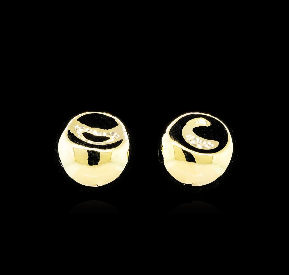 High end designer jewelry. Glossy and Satin Round Post Earrings - Gold Plated. Gold Plated Stud Set. Gold. 1inch.