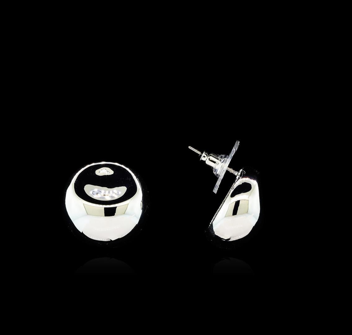 High end designer jewelry. Glossy and Satin Round Post Earrings - Rhodium Plated. Rhodium Plated Stud Set. Silver. 1inch.