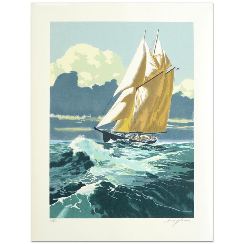"Gloucester Fisherman" is a limited edition serigraph on paper by Harry Schaare (1922-2008), numbered and hand signed by the artist! Includes Certificate of Authenticity! Measures approx. 27.5" x 36.5" (with border), 21.5" x 29.5" (image).