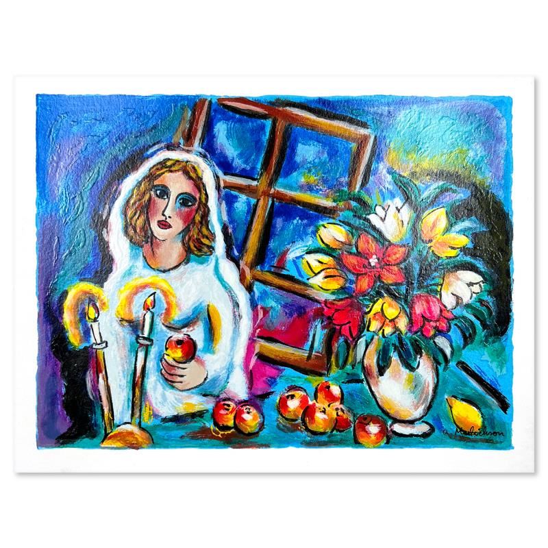 "Glowing Candles" is a limited edition serigraph on paper by Alex Meilichson. The piece comes hand signed by the artist, numbered, and with a letter of authenticity. Measures approximately 9" x 12".