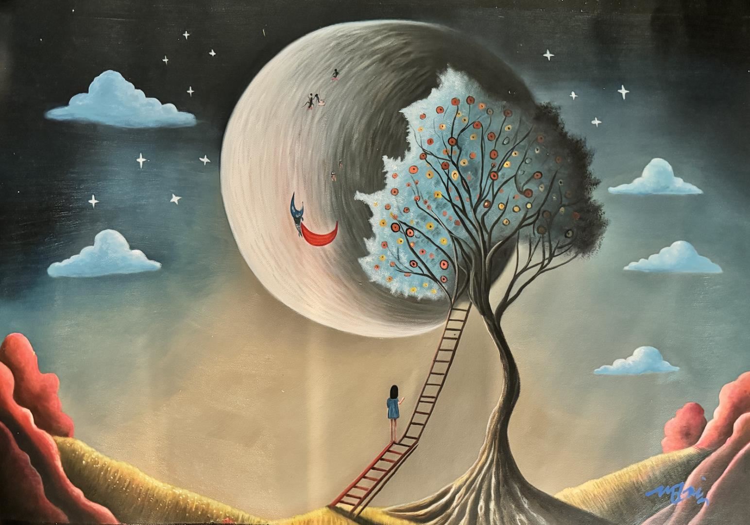 A stunning Artpiece in very surreal style, by a young American artist Mani. 20"x30" original on canvas w/ COA