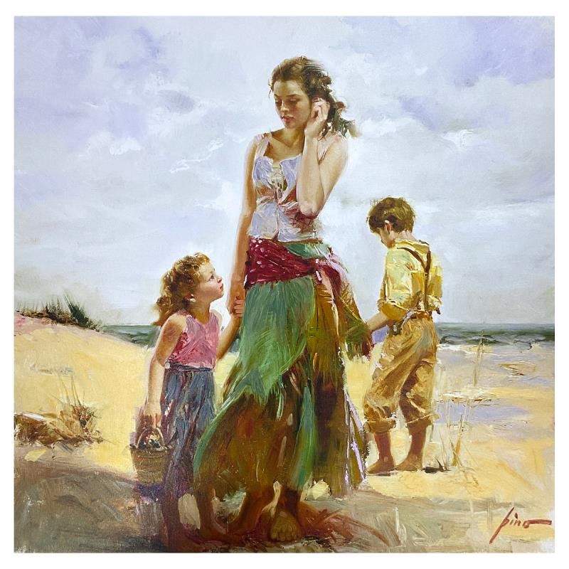 "Golden Afternoon" is an hand embellished limited edition giclee on canvas by Pino (1939-2010), numbered and hand signed by the artist. Includes Certificate of Authenticity. Measures approx. 30" x 30" (image).