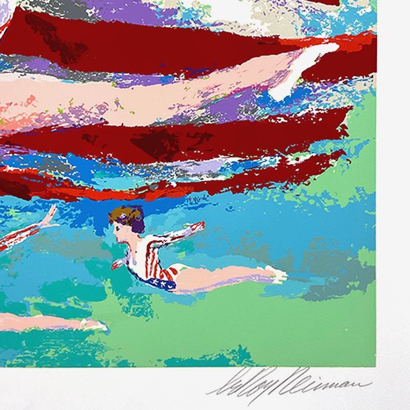 "Golden Girl" is a limited edition serigraph on paper by LeRoy Neiman (1921-2012), numbered 330/500 and hand signed by the artist. Includes Letter of Authenticity. Measures approx. 37" x 30" (border), 30.5" x 24" (image). Due to the age of the piece there is very minor creasing in the white border area that will be concealed when framed.