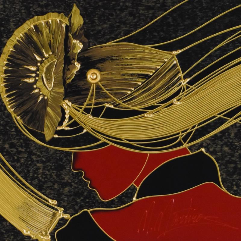 "Golden Grace" is a limited edition mixed media silkscreen on paper by Martiros Manoukian, numbered and hand signed by the artist. This piece comes custom framed. Includes Letter of Authenticity. Measures approx. 42" x 34" (frame), 28.5" x 20.5" (image).