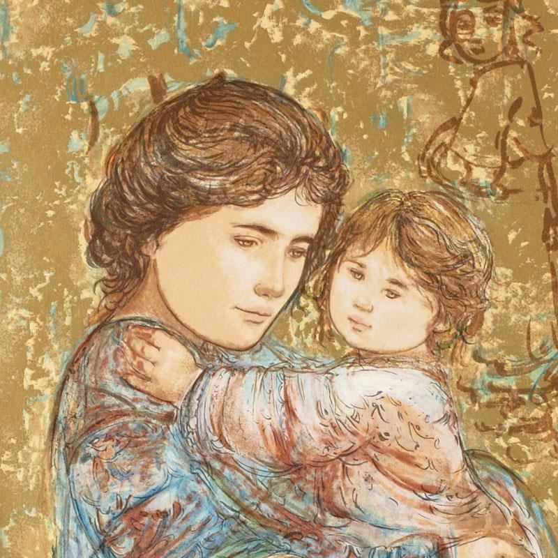 "Golden Times" is a limited edition serigraph on paper, numbered and hand signed by Edna Hibel (1917-2014). Includes Certificate of Authenticity! Measures approx. 19" x 30" (with border), 15" x 26" (image).