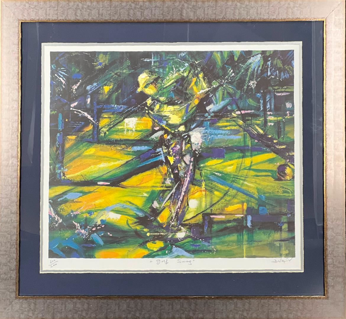 Golf Swing (Fr) by Duaiv. Limited Hand Signed Lithograph on Paper Framed. Dimensions: 22 x 25. Excellent Condition.