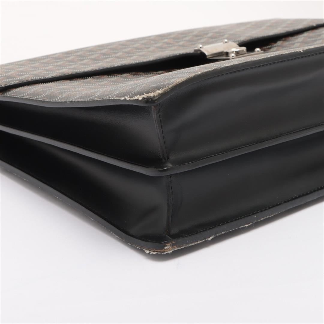 One Goyard Black Goyardine Coated Canvas Chypre Deux Soufflets Briefcase Bag. Item is sold AS-IS. All available information is listed in the description and shown in the photo. Men's black, brown and white stenciled Goyardine coated canvas Goyard Chypre Deux Soufflets briefcase with palladium hardware, black leather trim, single rolled top handle, slit pocket at back, marigold leather lining, three compartments; one featuring zip closure and push-lock closure at front flap. Height: 12" Width: 16" Depth: 3.75" Handle Drop: 2"
