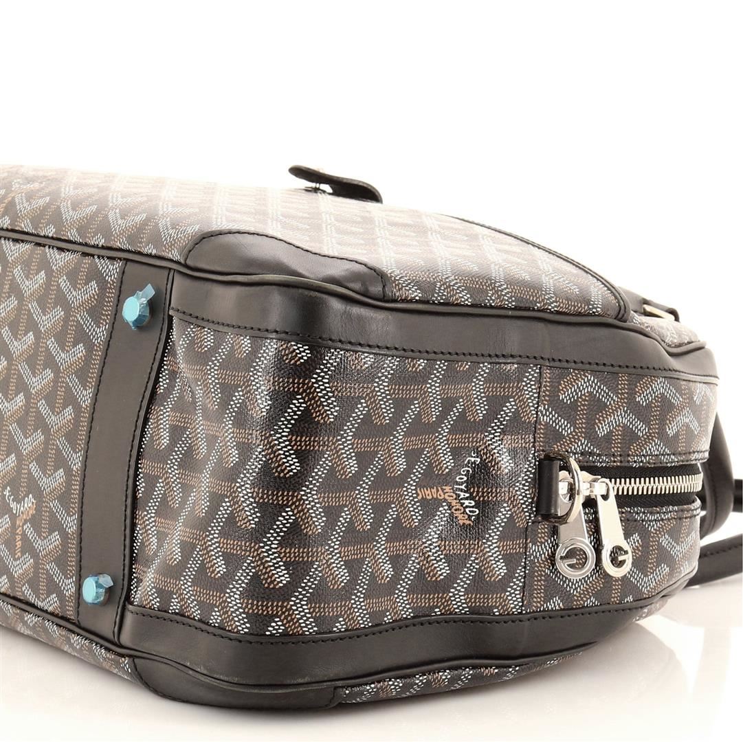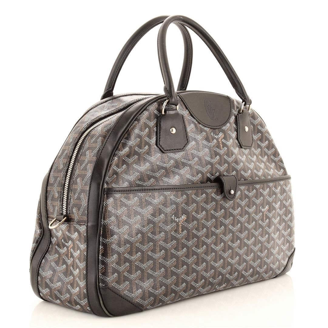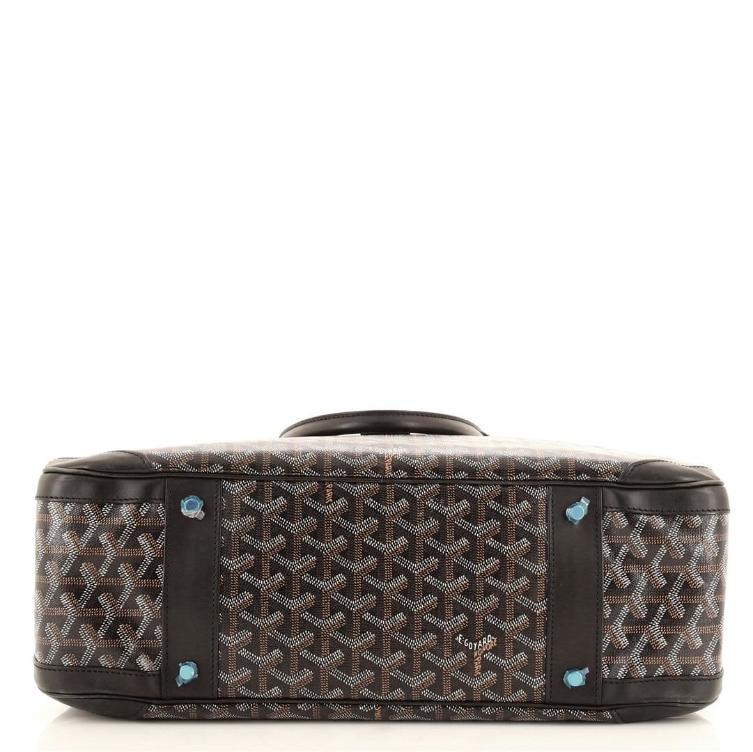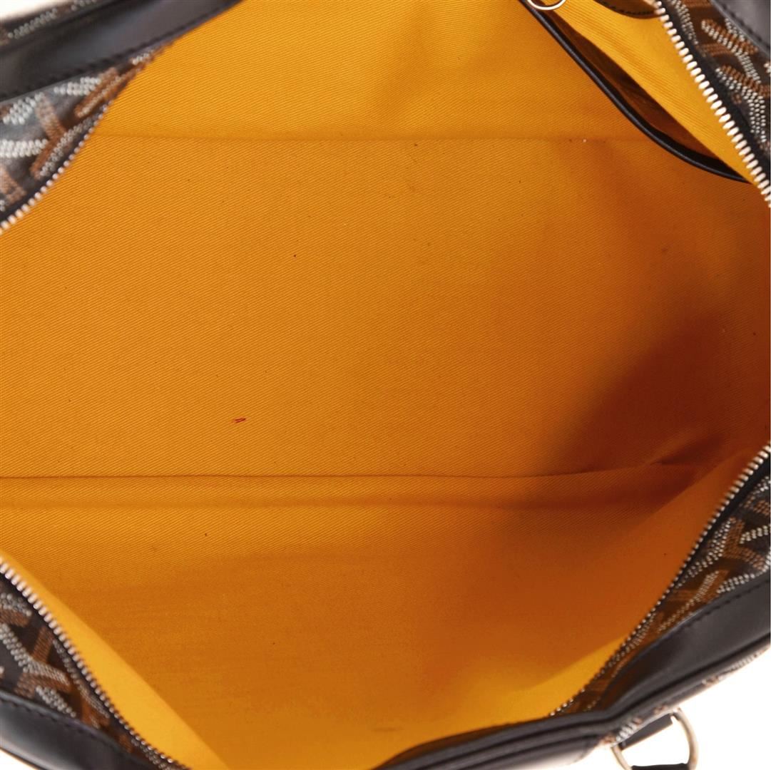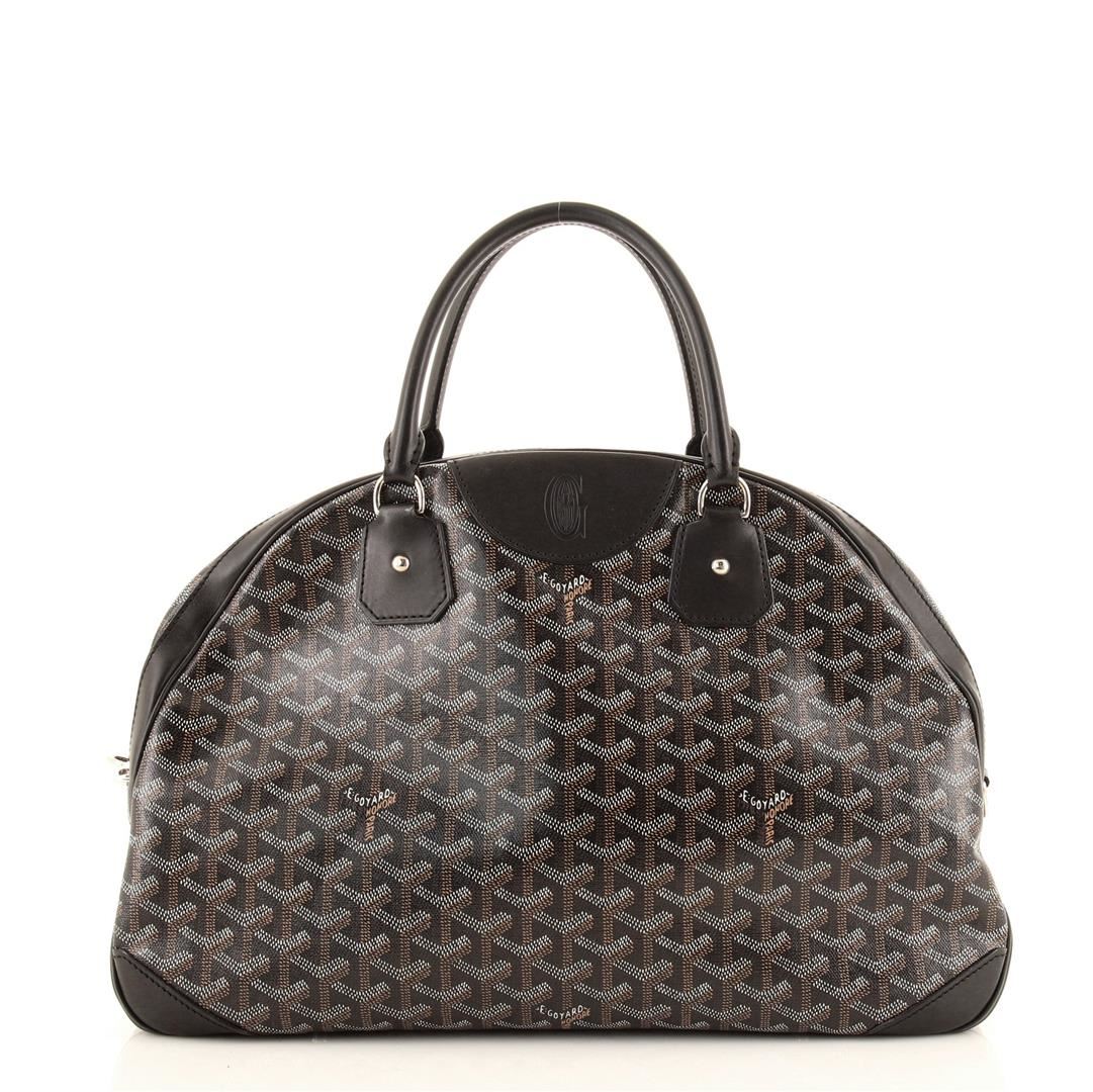 Goyard St. Jeanne GM Bowler Bag features the classic black Goyard Chevron pattern and a roomy interior, double rolled leather handles, yellow fine textile lining, silver-tone hardware, one zip pocket and one flat pocket, double zip closure.