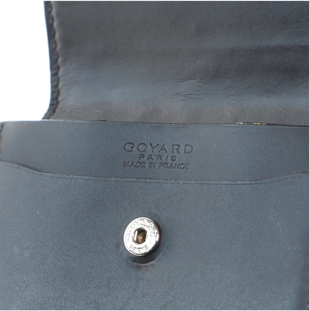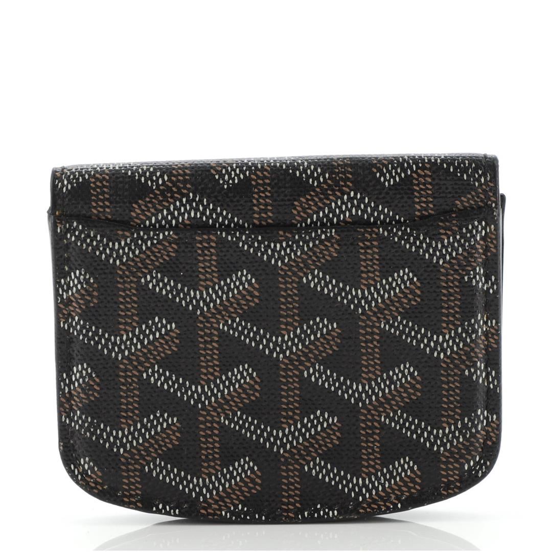 The Black Goyard Goyardine Flap Coin Purse is upholstered in canvas, the flap coin purse features a quilted canvas body, an outer flat pocket and a magnetic closure.
