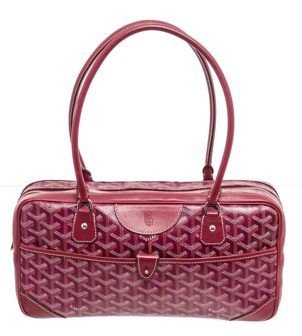 Goyard Burgundy Leather Print St. Martin Shoulder Bag with gold-tone hardware, interior slip pockets, shoulder straps and zipper closure MEASUREMENTS: Length 6.5 in / 17 cm Width 13 in / 33 cm Height 3.25 in / 8 cm Condition: Pre-Owned Good overall, please see photographs for detail.