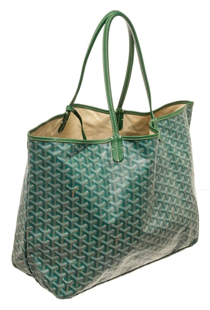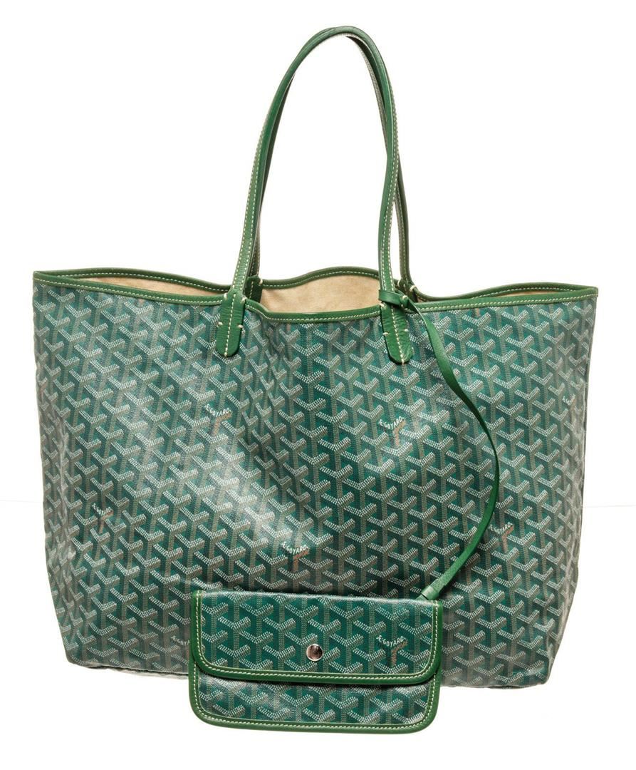 Goyard Green Leather St. Louis GM Tote Bag with leather, gold-tone hardware, trim leather, shoulder strap and flap closure.