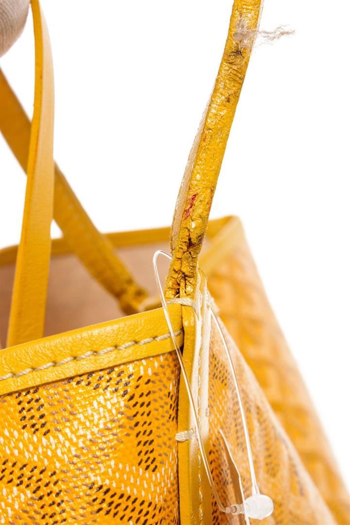 Yellow Goyardine coated canvas Goyard St. Louis PM with palladium hardware, tonal leather trim, dual flat shoulder straps, natural canvas lining and an open top.