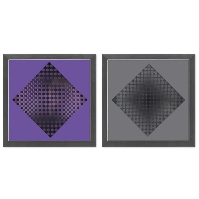 "Goyo - SZ et Goyo - EZ de la série CTA - 102 (Diptych)" is a set of heliogravure prints on paper, published in 1971, by Victor Vasarely (1908-1997). These pieces come custom framed, with a letter of authenticity and with a 1976 Vasarely paperback. Measures approx. 11.5" x 11.5" (frame), 9" x 9" (image).