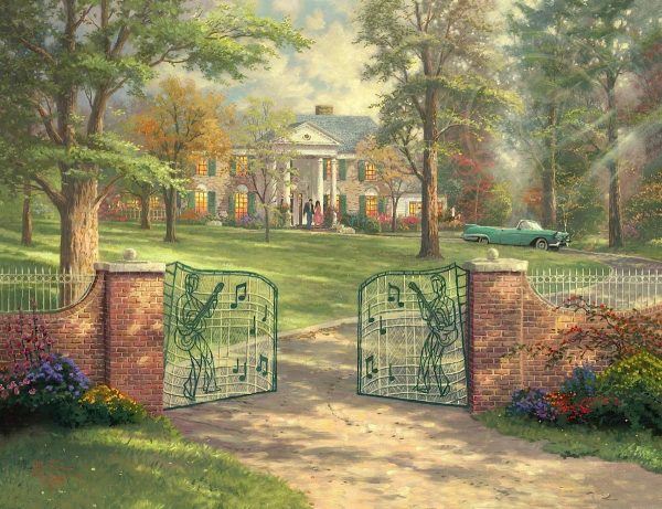 Graceland 50th Anniversary by Thomas Kinkade. Unframed and stretched on Limited Edition enhanced canvas. Comes with certificate of Authenticity! Dimension (inches): 18x24