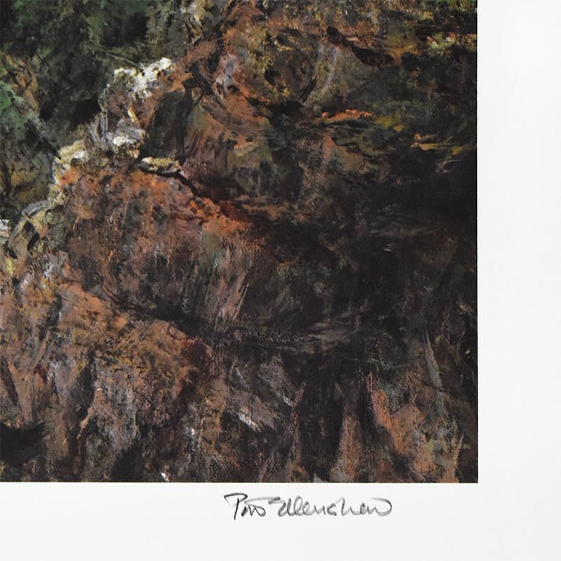 "Grand Flight" is a limited edition lithograph on paper by Peter Ellenshaw (1913-2007), numbered and hand signed by the artist. Includes Letter of Authenticity. Measures approx. 35.5" x 24.5" (border), 30.5" x 19" (image). Please note: due to the very thin nature of this paper, there may be some minor creases.