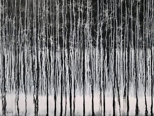 A black & white abstract acrylic painting on stretched canvas by Marion Wood. 30x40", COA.