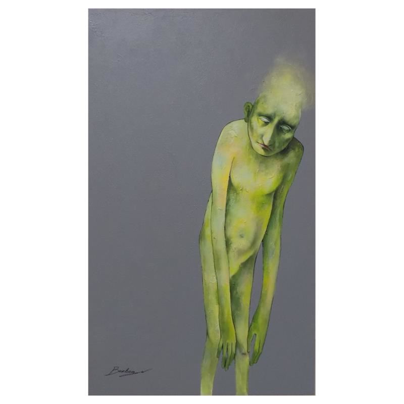 "Gray Matter""&" is an original acrylic mixed media painting on canvas by Ara Berberyan. The piece is hand signed and comes with a letter of authenticity. Measures approximately 40" x 24".