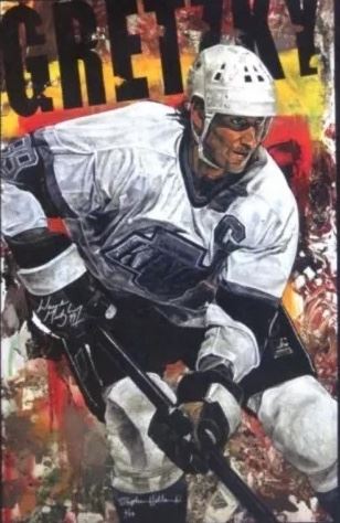 Gretzky "Kings", signed by Gretzky & artist Stephen Holland . 42" x 28" Giclee 15/99 on stretched canvas ,some unk. spotting on back. With COA