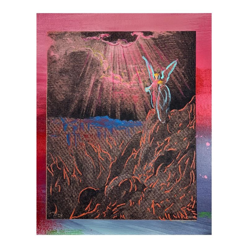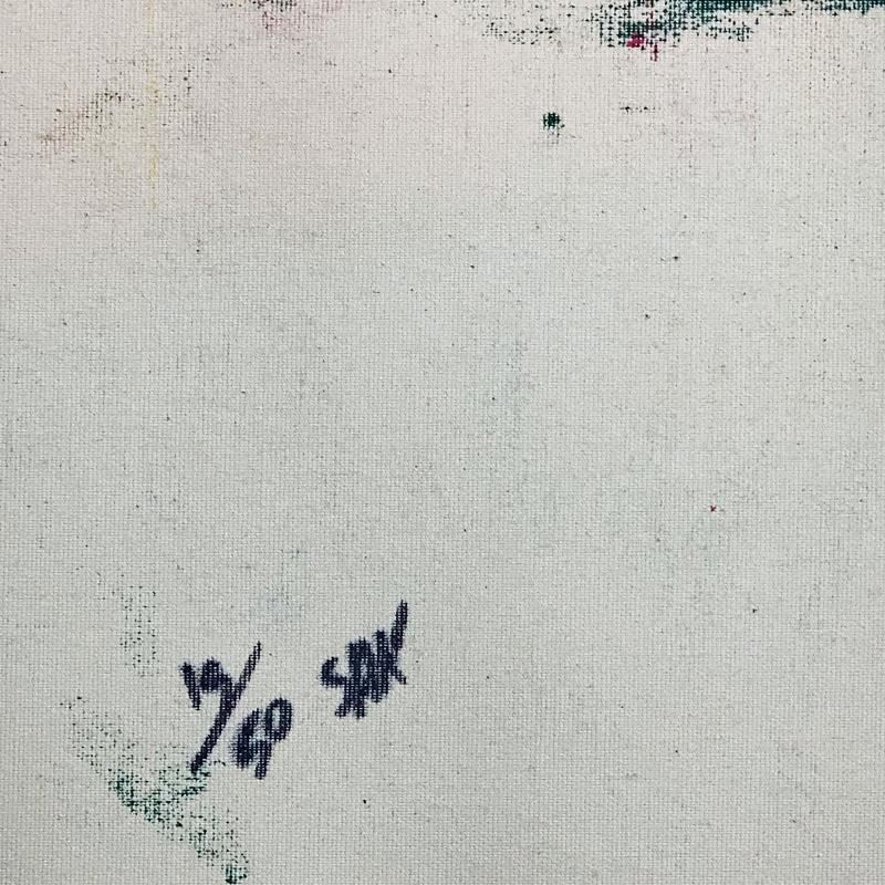 Guardian Angel is limited edition hand pulled silkscreen unique mixed media on canvas by Andy Warhol protege Steve Kaufman (1960-2010). This piece is numbered and hand signed inverso and includes a letter of authenticity. As is common with Kaufman's works, this piece may have perceived minor flaws, but is in overall good condition. Measures approximately 17.25 x 13.25 before cropping.