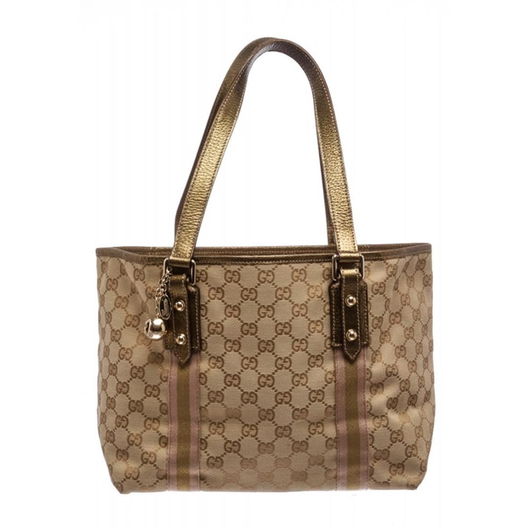 Open top tote with monogram pattern, interior zip pocket, single cellphone pocket, gold charm attached to handle. Item is Pre-Owned.