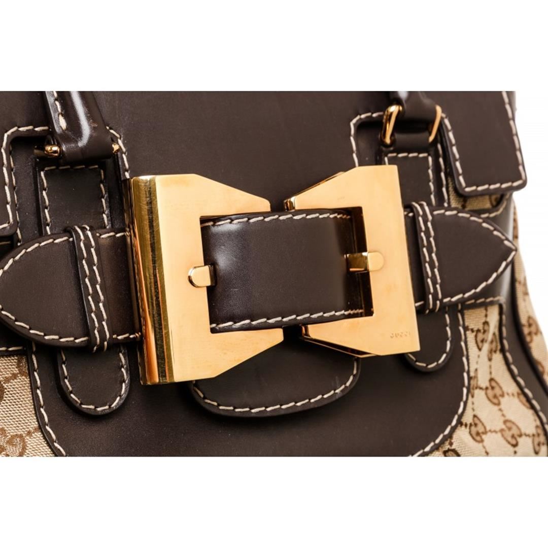 Overallip tab magnetic button closure. Interior is canvas fabric lined and contains one side zipper pocket and two sideip pockets. Item is pre-owned.