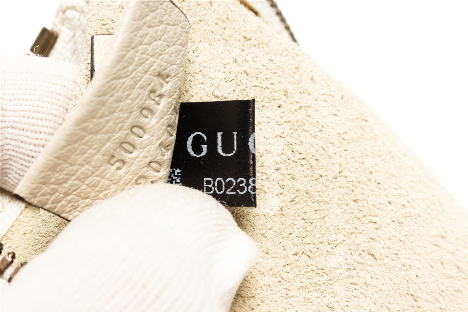 One Gucci Beige Leather Logo Print Clutch. Item is sold AS-IS. All available information is listed in the description and shown in the photo. Gucci beige leather logo print clutch with beige suede lining, gold hardware, and zipper closure.