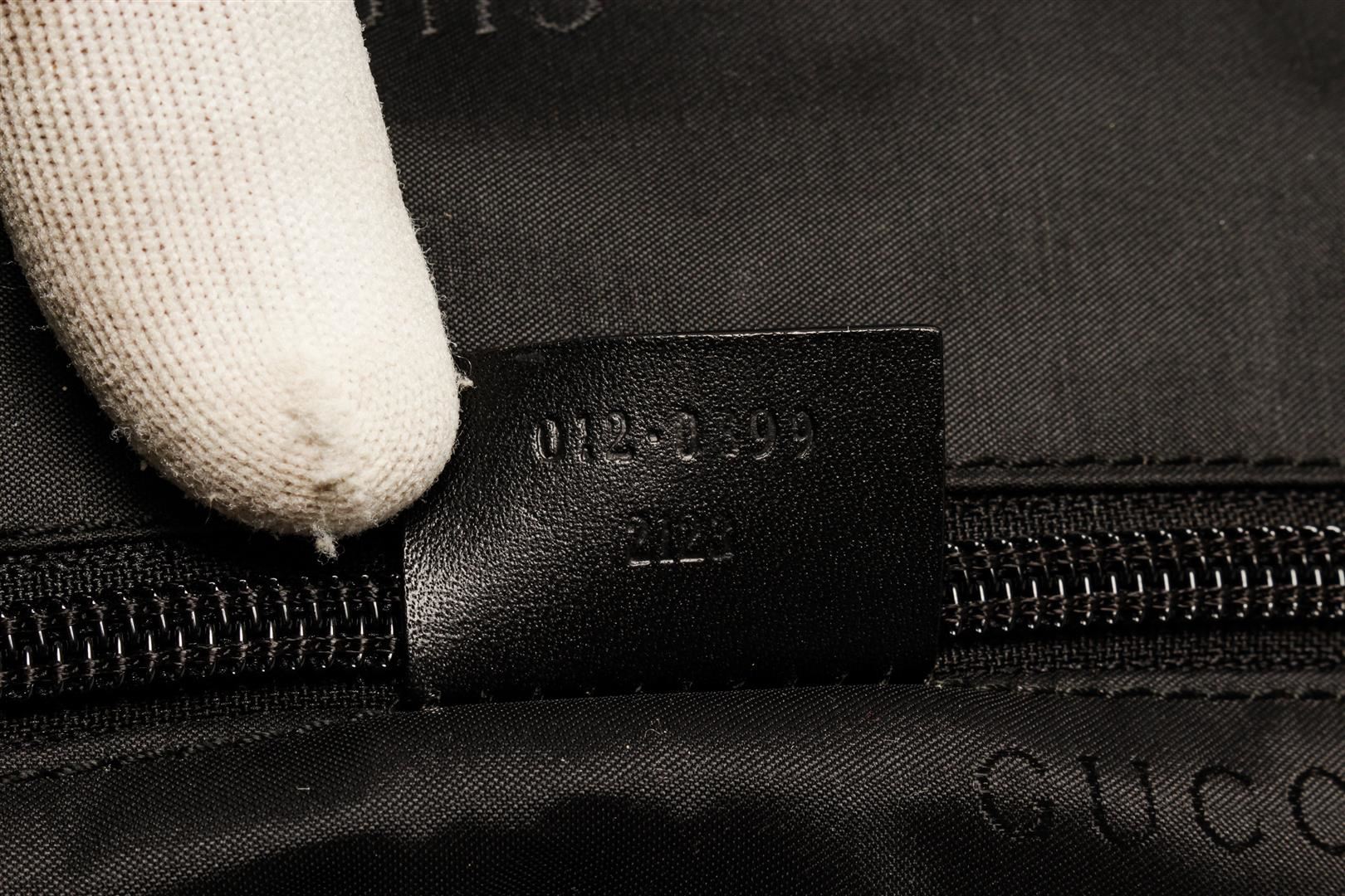 One Gucci Black Boston Bag. Item is sold AS-IS. All available information is listed in the description and shown in the photo. Gucci black Boston bag with top handles, silver-toned hardware, one zip interior pocket, and black fabric lining.