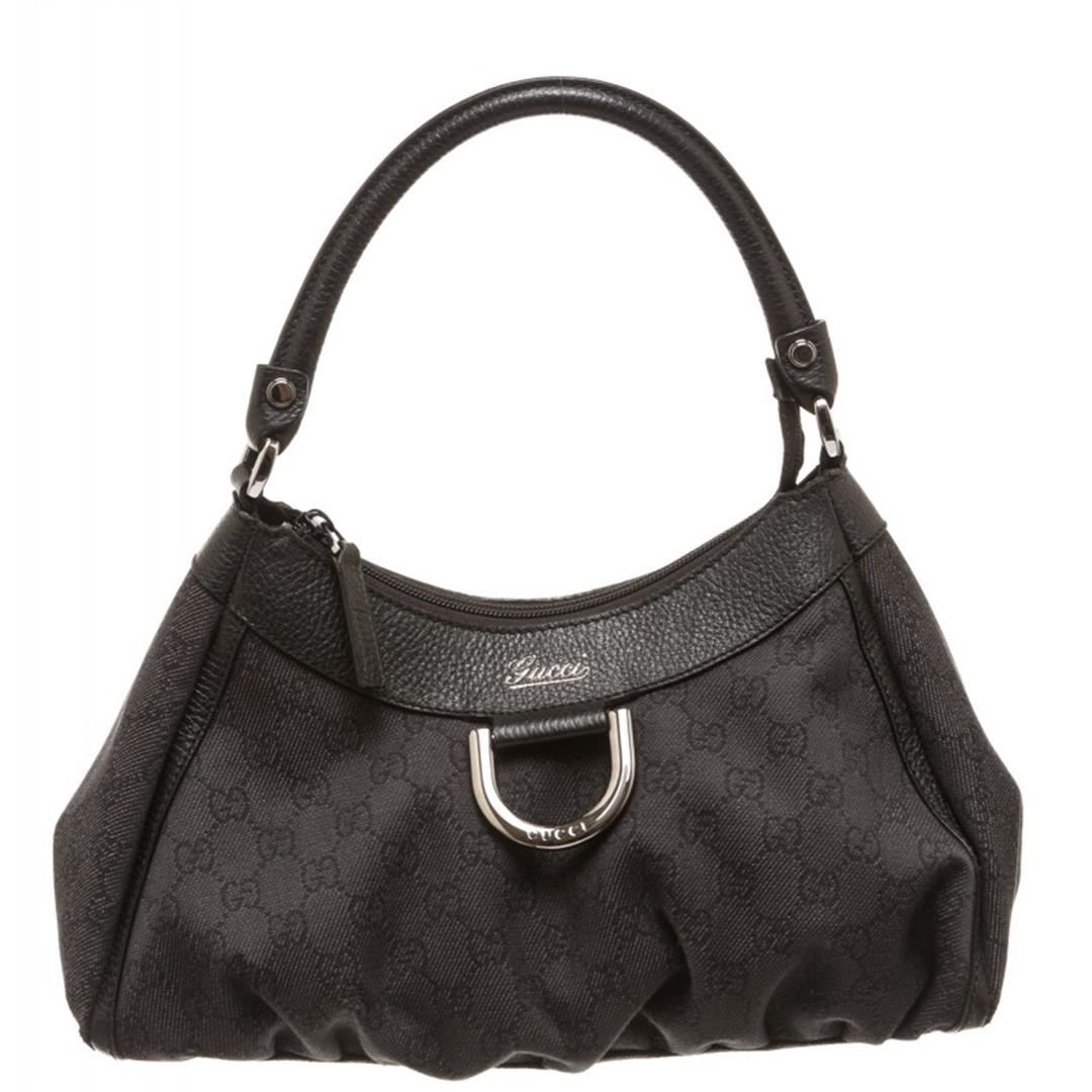 One Gucci Black Denim Leather Monogram D Ring Shoulder Bag. Overall zipper closure. Interior is fabric lined and contains side zipper pocket and sideip pocket. Item is pre-owned.