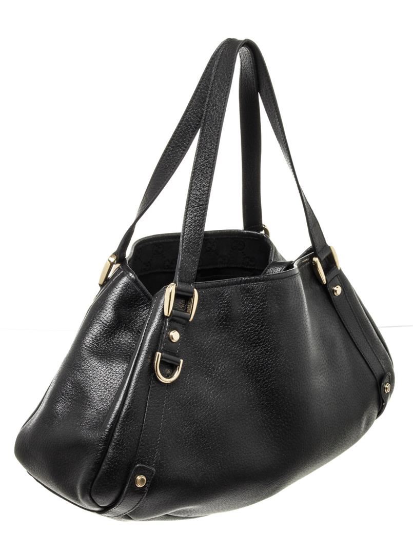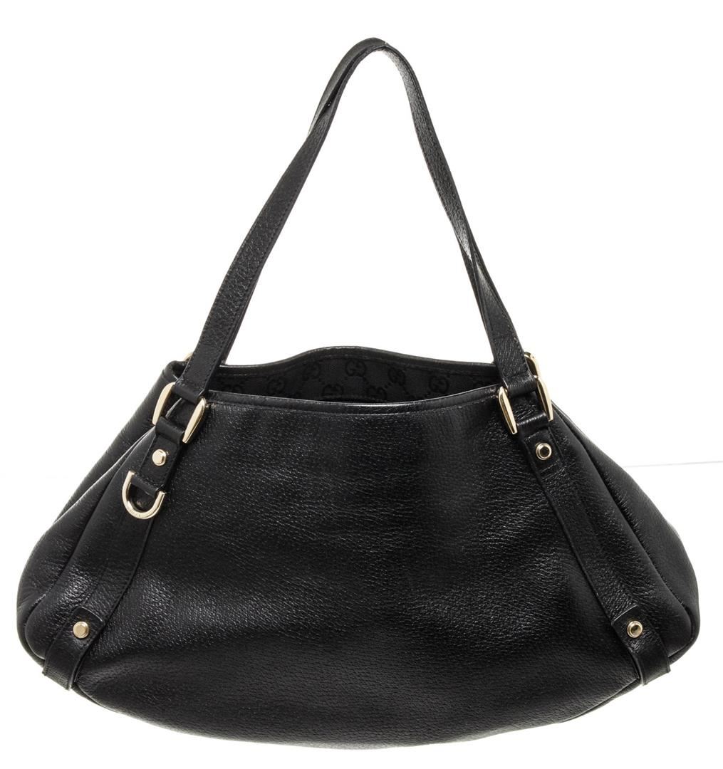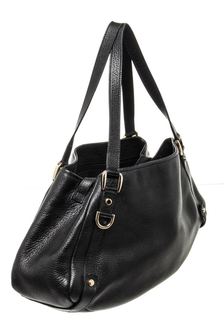 Gucci Black Leather Abbey Tote Bag. Please see photos and description for all available information! Gucci Black Leather Abbey Tote Bag with leather, gold-tone hardware, interior slip pockets, shoulder strap and flap closure.