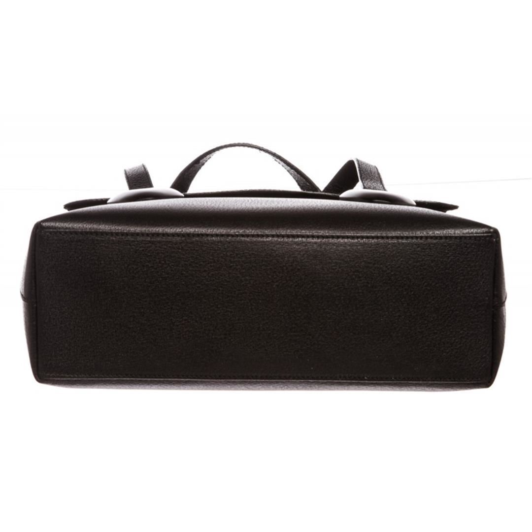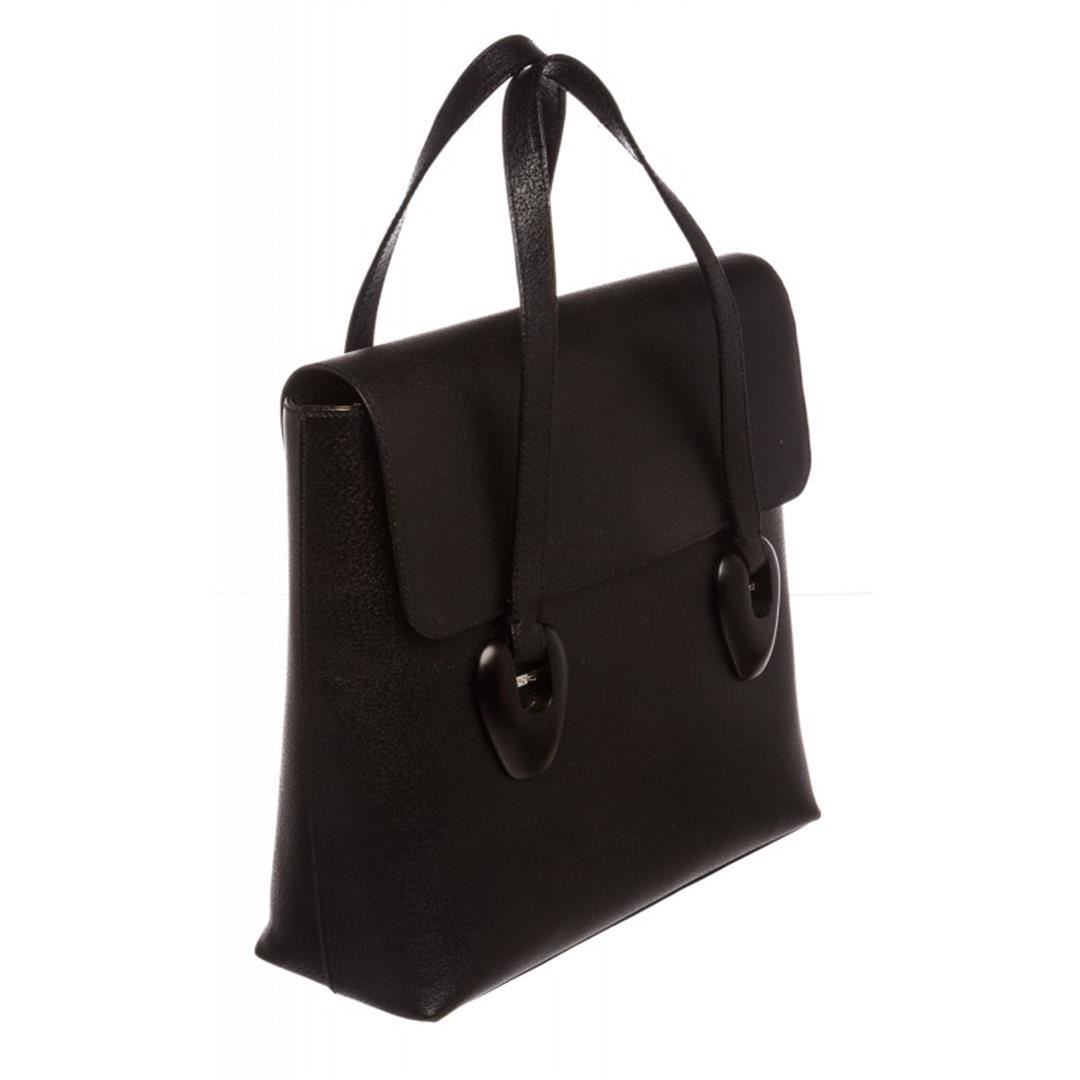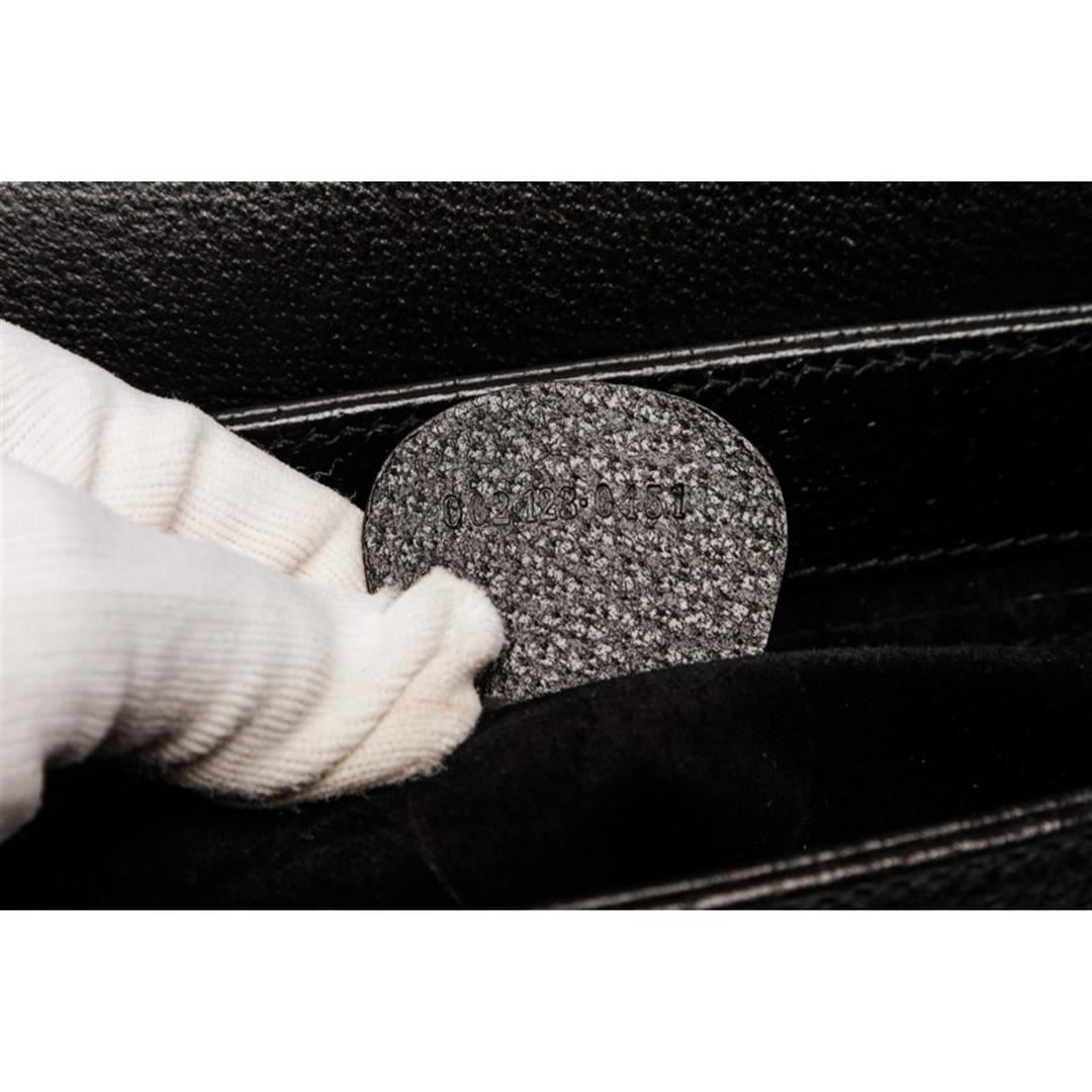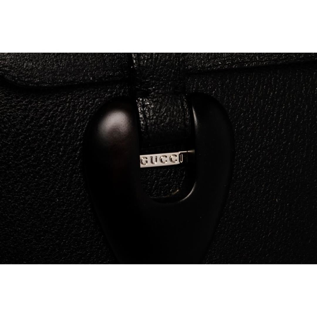 One Gucci Black Leather Flap Tote Handbag. Crafted out of black leather, dual flat handles, and flap magnetic snap closure. Inner black suede lining and side zip pocket. Item is pre-owned.
