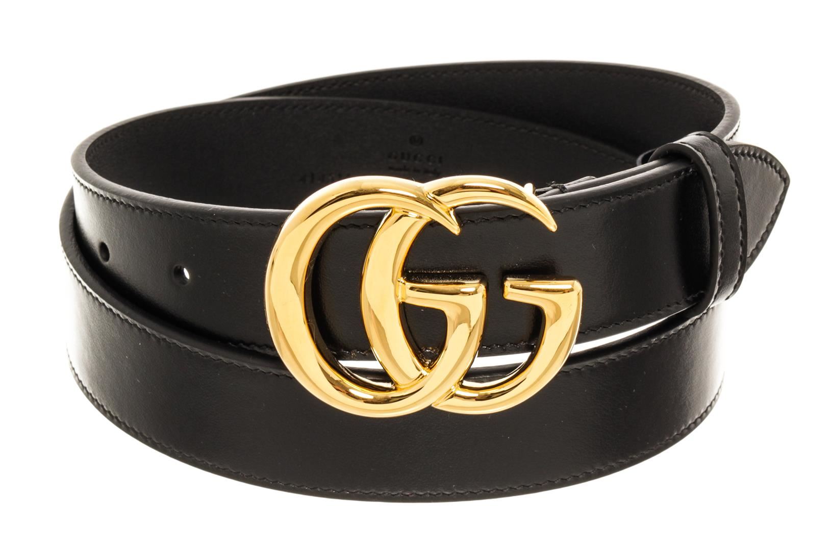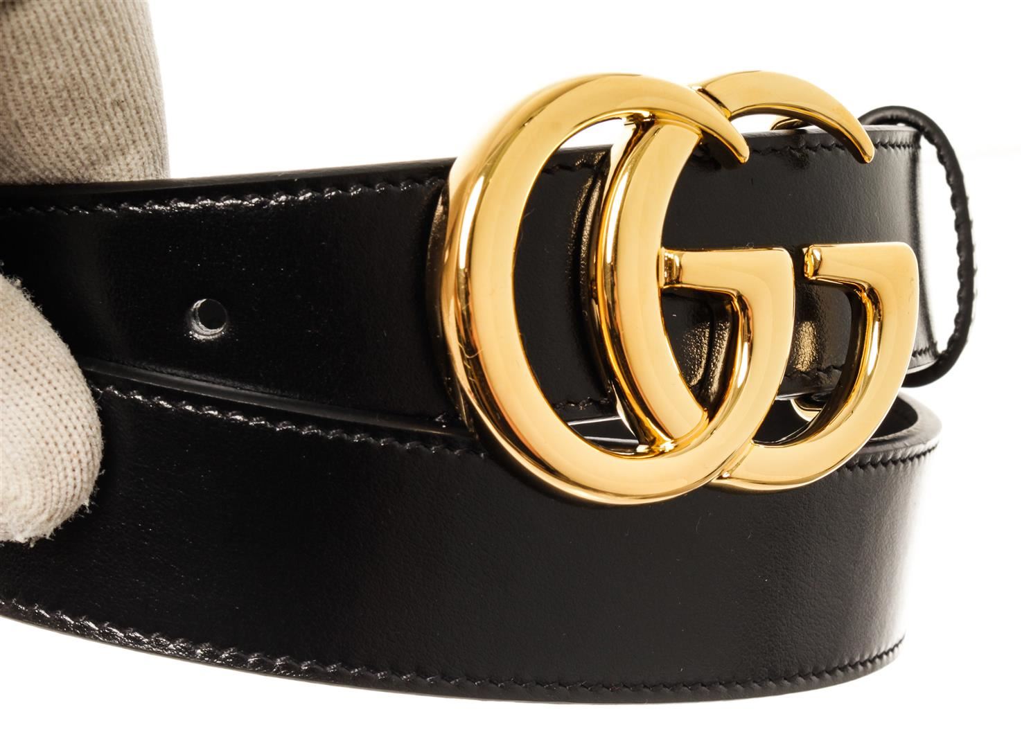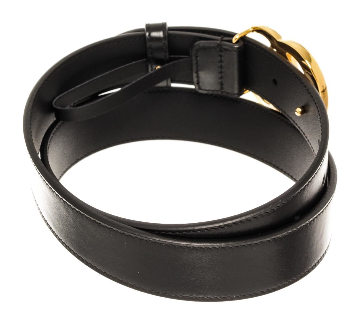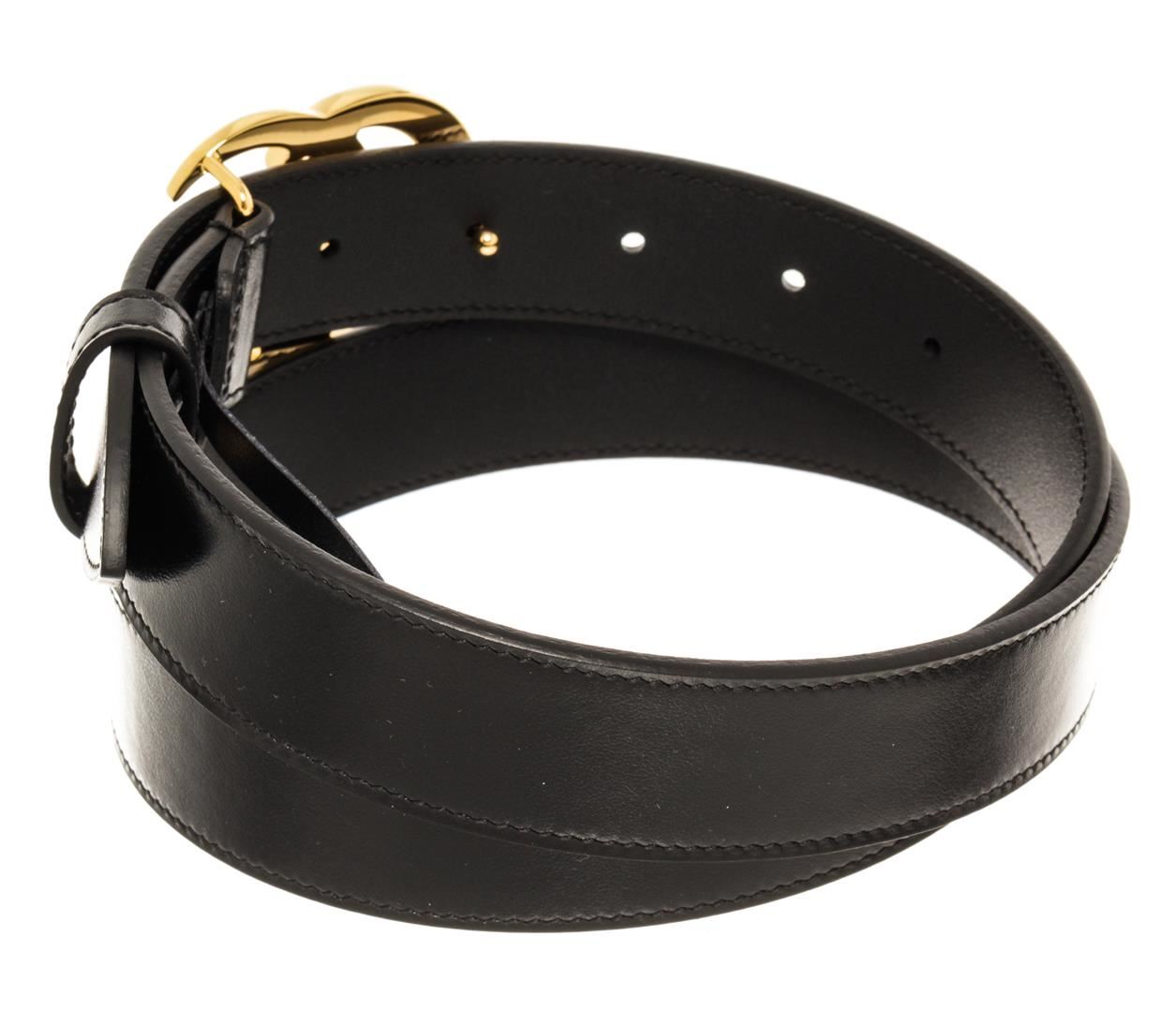 One Gucci Black Leather GHW GG Thin Belt 80. Item is sold AS-IS. All available information is listed in the description and shown in the photo. Gucci Black Leather GG Wide Belt with material leather, gold-tone hardware and turn-lock closure, with double GG logo.