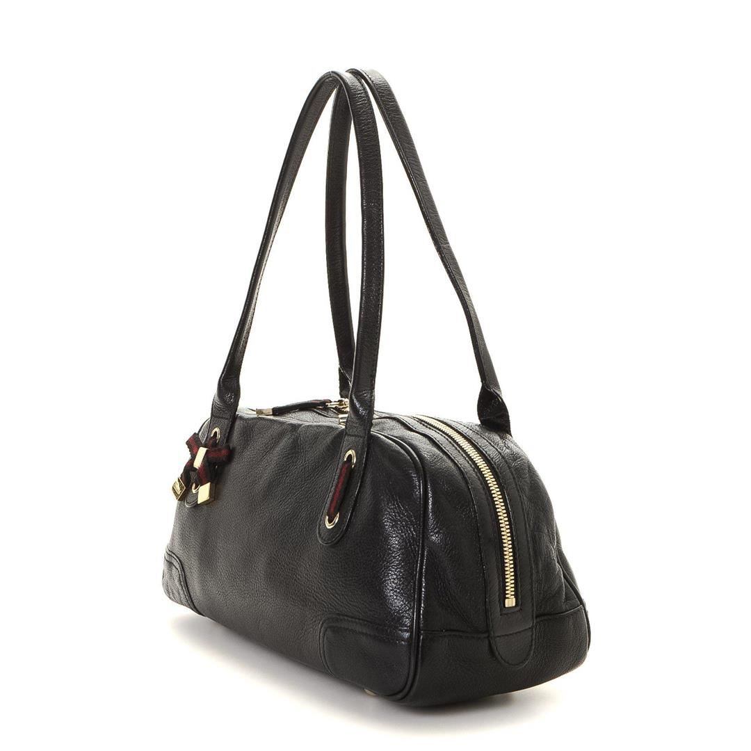 Gucci Black Leather Princy Shoulder Bag with gold-tone hardware, gold-tone hardware, smooth black leather trim, 2 rolled leather shoulder, top dual zipper closure, single side zipper pocket & a cell phone pocket, zip closure. Measurements: Length: 13 in / 33 cm Width: 5 in / 13 cm 6 in / 15 cm Condition: Pre-Owned Good overall, please see photographs for detail.