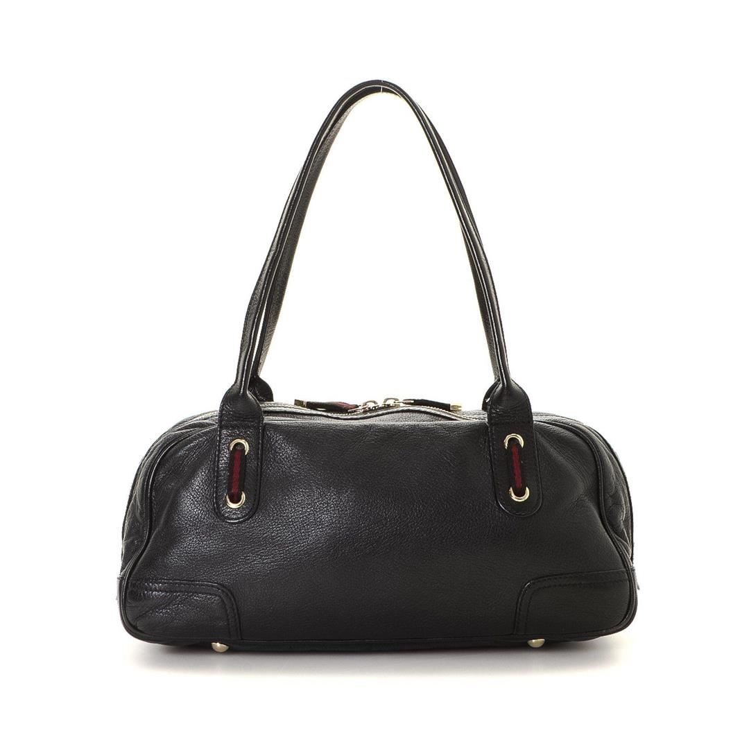 Gucci Black Leather Princy Shoulder Bag with gold-tone hardware, gold-tone hardware, smooth black leather trim, 2 rolled leather shoulder, top dual zipper closure, single side zipper pocket & a cell phone pocket, zip closure. Measurements: Length: 13 in / 33 cm Width: 5 in / 13 cm 6 in / 15 cm Condition: Pre-Owned Good overall, please see photographs for detail.