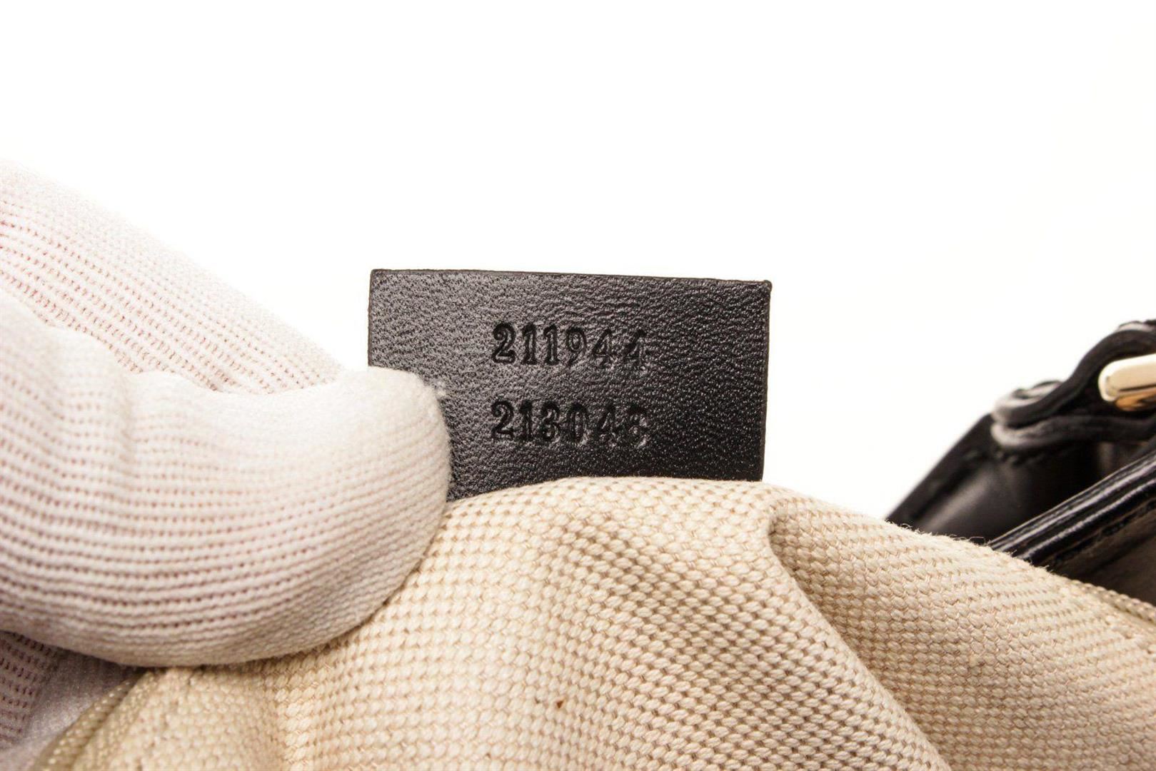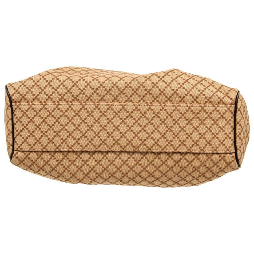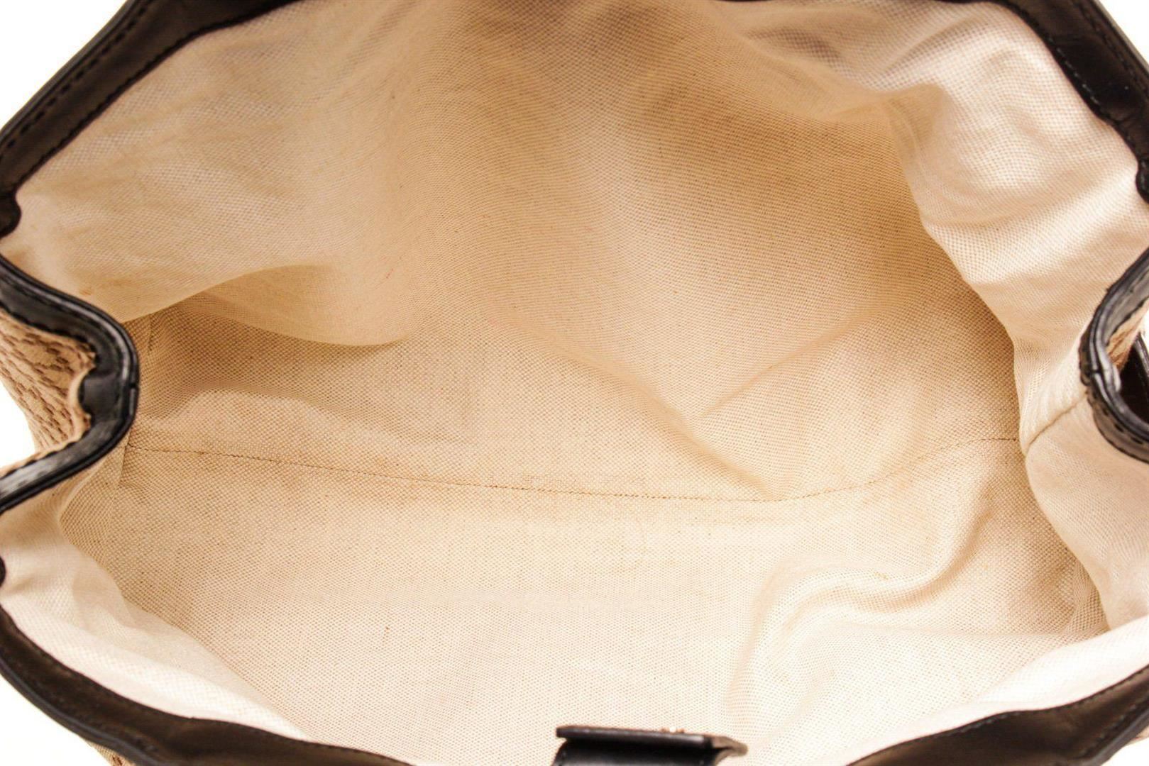 Gucci Brown Canvas Leather Sukey Medium Tote Bag with canvas leather gold-tone hardware, black leather trim, dual-rolled handles, detachable adjustable shoulder strap, creme canvas lining, three interior pockets; one with zip closure and zip closure at top.