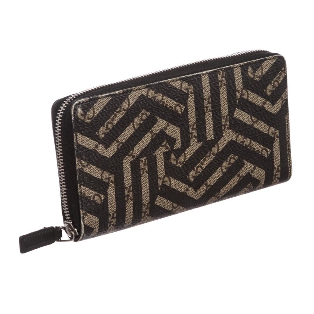One Gucci Brown Monogram Coated Canvas Long Zippy Wallet. Crafted out of coated monogram canvas, zip around closure, and silver tone hardware. Inner black leather trim, fabric lining, and twelve cardots with a zip pocket middle divider. Item is pre-owned.