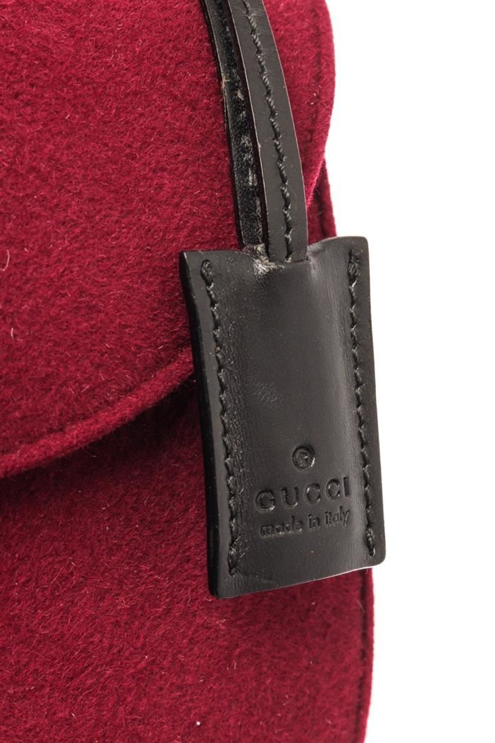 Gucci Burgandy Maroon Velvet Top Handle Bag. All available information is listed in the description and shown in the photos. Gucci Burgandy Maroon Velvet Top Handle Bag with gold-tone hardware, maroon velvet body and a leather handle and turn lock closure. Interior is lined in leather and features a slip pocket with a button closure, a zip pocket and small slip pocket. 18cm (length) x 7cm (depth) x 15cm (height) /7.08" x 2.75" x 5.90" Inches