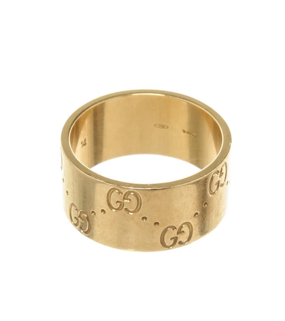 One Gucci Gold Icon Wide Ring. Item is sold AS-IS. All available information is listed in the description and shown in the photo. Gucci Gold Icon Wide Ring with gold-tone hardware. Ring: 6.5