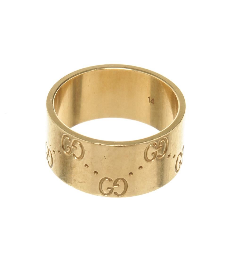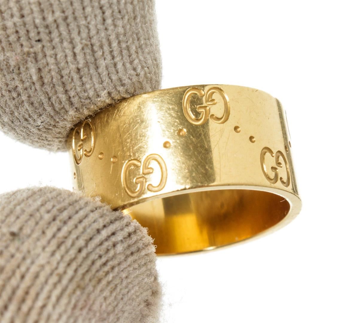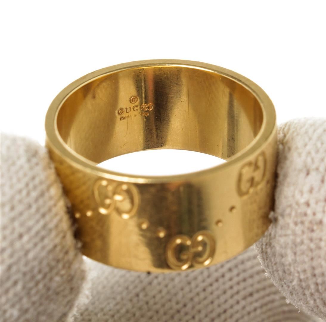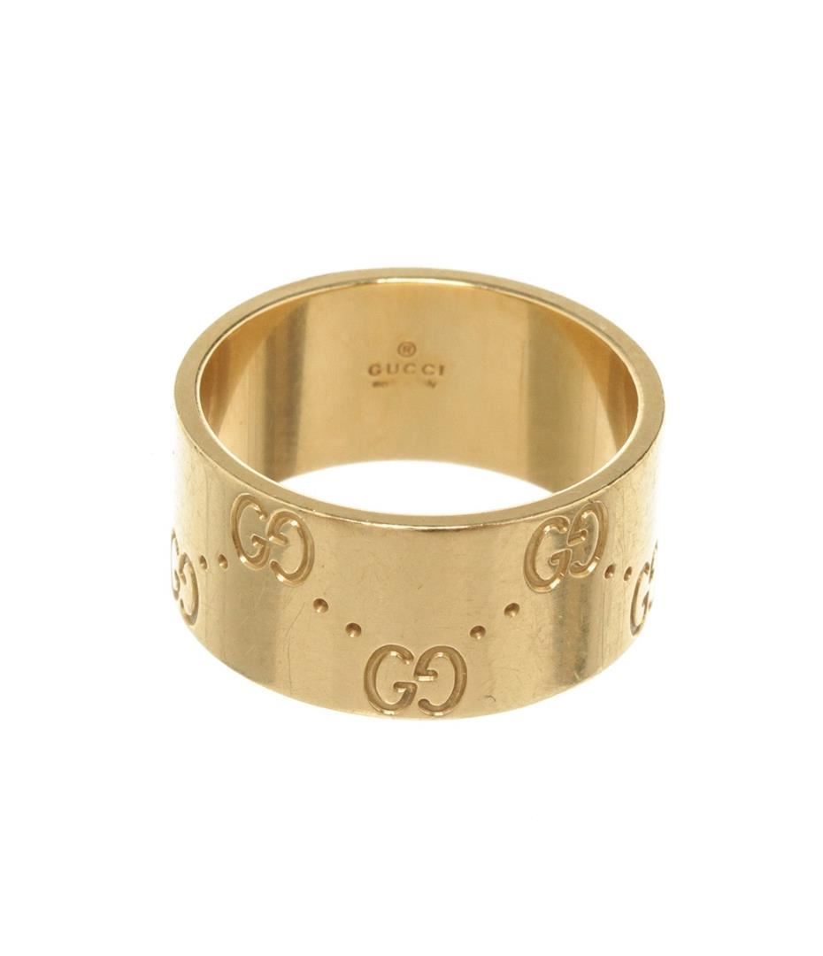 One Gucci Gold Icon Wide Ring. Item is sold AS-IS. All available information is listed in the description and shown in the photo. Gucci Gold Icon Wide Ring with gold-tone hardware. Ring: 6.5