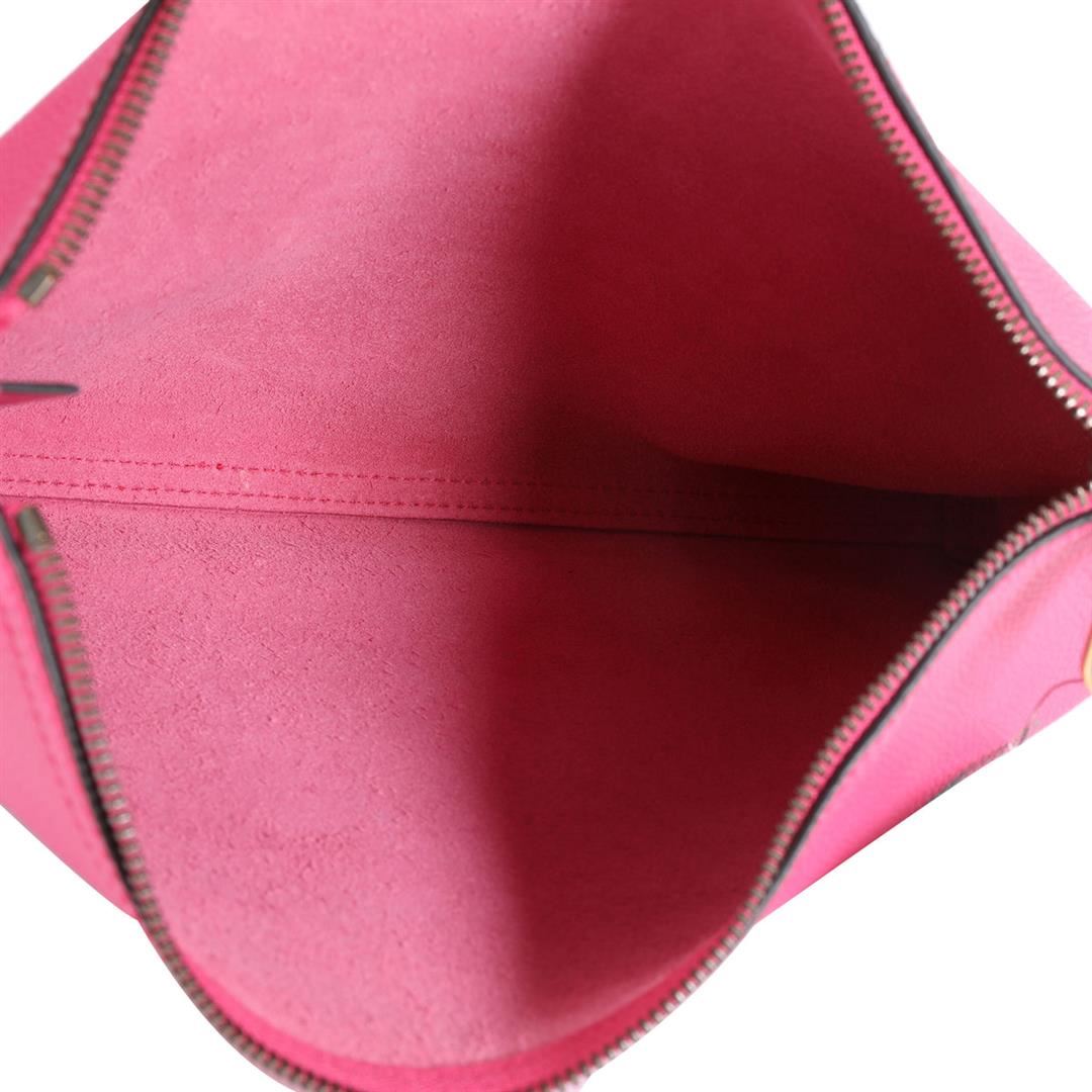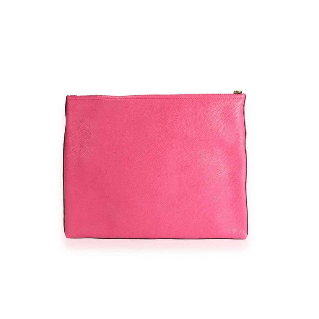 One Gucci Hot Pink Leather Portfolio Clutch. Item is sold AS-IS. All available information is listed in the description and shown in the photo. Gucci Hot Pink Leather Portfolio Clutch. Features gold hardware, pink canvas interior, pink leather exterior, and a gold zipper closure.