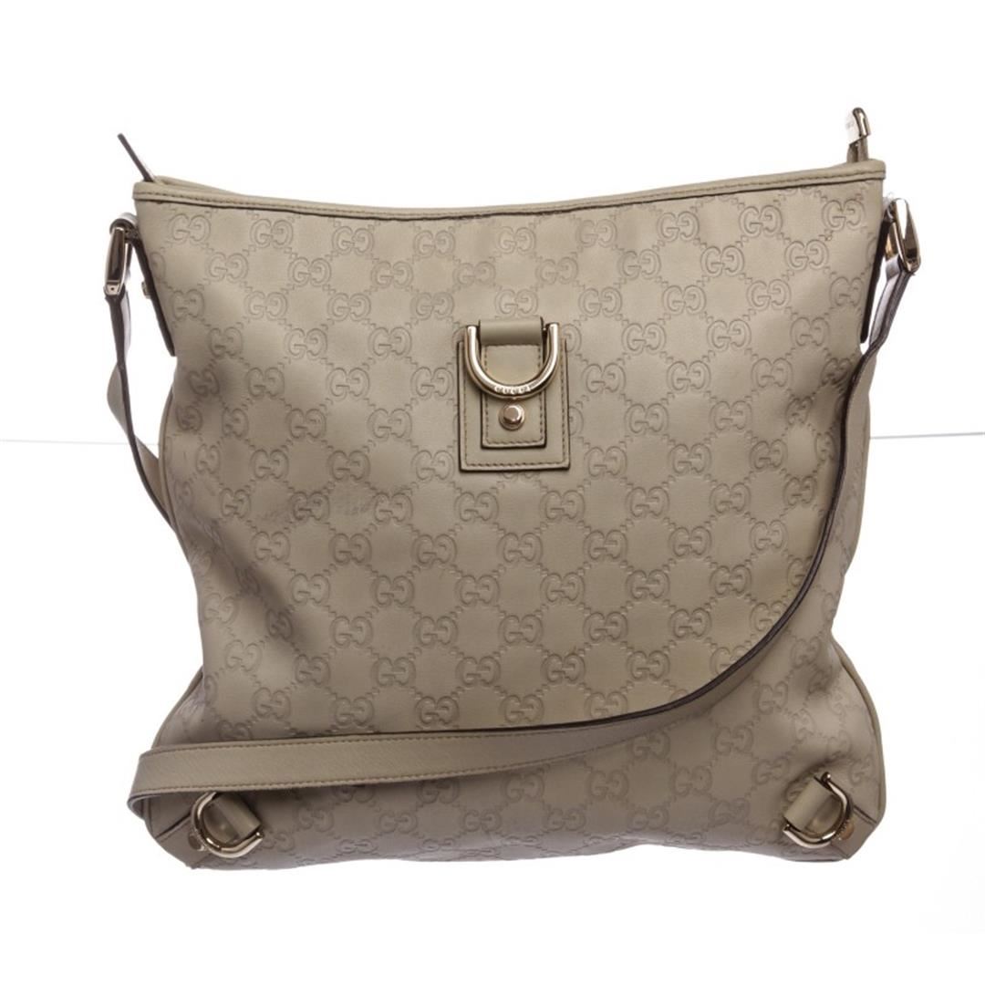 Ivory Gucci guccissima monogram leather crossbody messenger with silver tone hardward, adjustable flat leather strap, horsebit printed canvas lining, one zipper compartment at interior wall, oneip pocket and overall zipper closure.