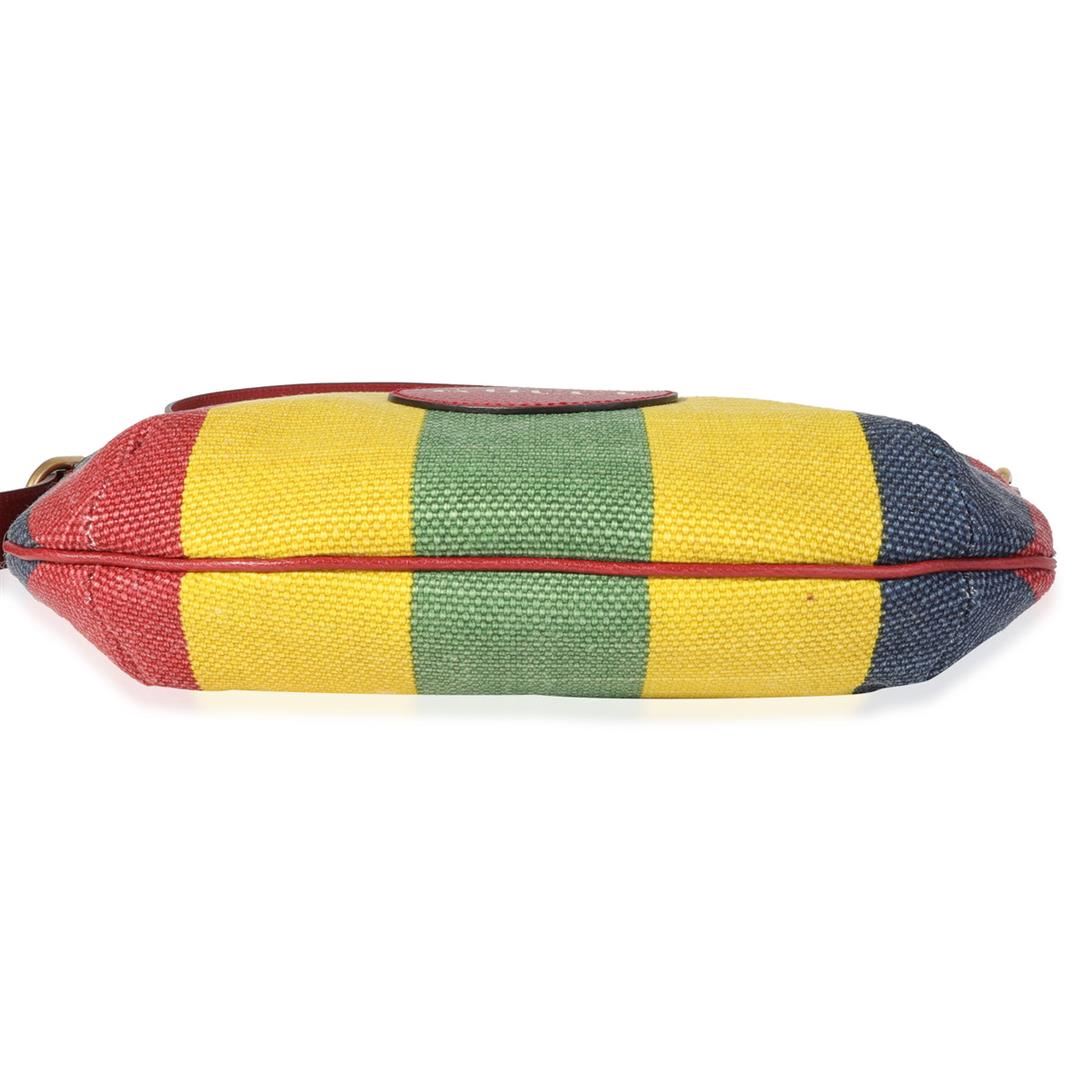 One Gucci Multicolor Striped Canvas Hobo Bag. Item is sold AS-IS. All available information is listed in the description and shown in the photo. Gucci Multicolor Striped Canvas Hobo Bag. Features gold hardware, red leather strap, white canvas interior with a zipper pocket, and a gold zipper closure.