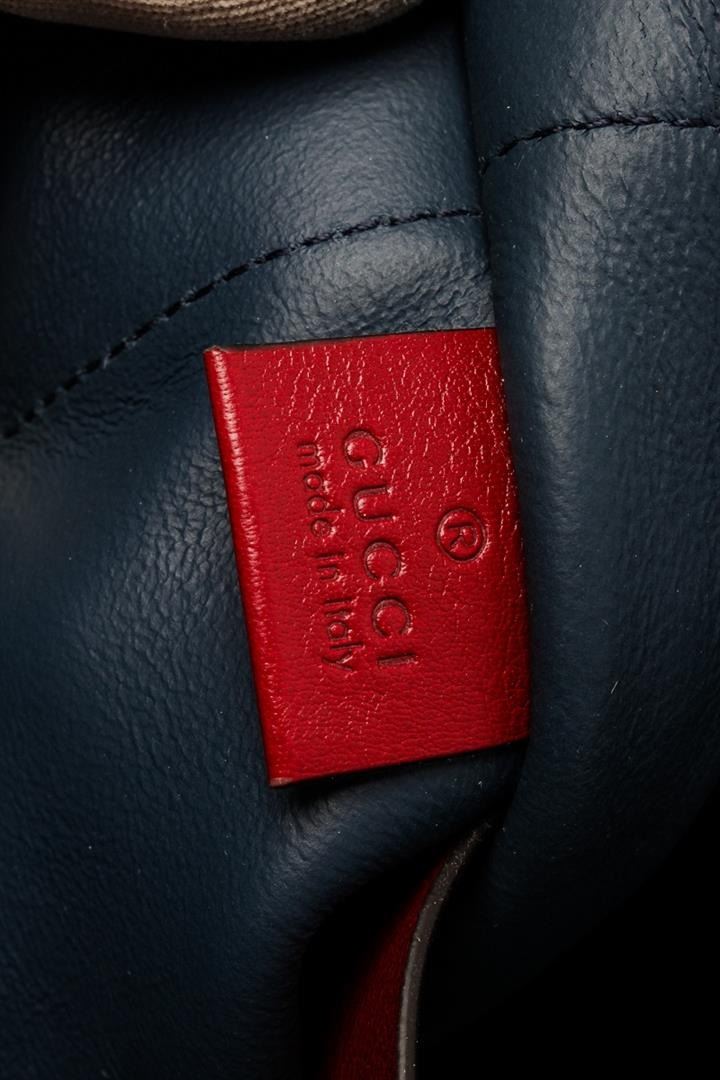 Gucci Navy Red Suede Leather Large NY Yankees Rajah Chain Tote Bag. All available information is listed in the description and shown in the photos. Gucci Navy Red Suede Leather Large NY Yankees Rajah Chain Tote Bag with blue canvas, gold-tone hardware, leather trim, dual shoulder straps, chain-link shoulder straps, leather, embroidered & crystal accents, leather lining, snap closure at top, includes dust bag & interior zip pouch. Height: 14.25" Width: 17.25" Depth: 1.75", Shoulder Strap Drop: 10.25" / 36.19 x 43.81 x 4.44 Cm