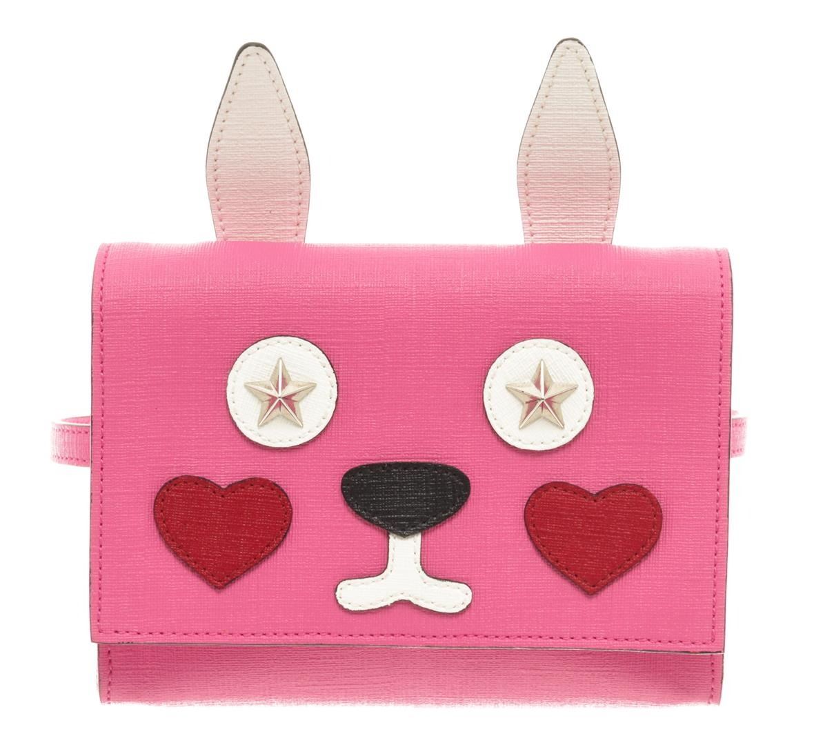 Gucci Pink Leather Children's Animal Waist Bag. All available information is listed in the description and shown in the photos. children's animal waist bag leather with applique exterior material leather exterior color pink interior material nylon, interior color red hardware color silver. Height 5", Width 6.5", Depth 2" / 12.7 x 16.51 x 5.08 cm