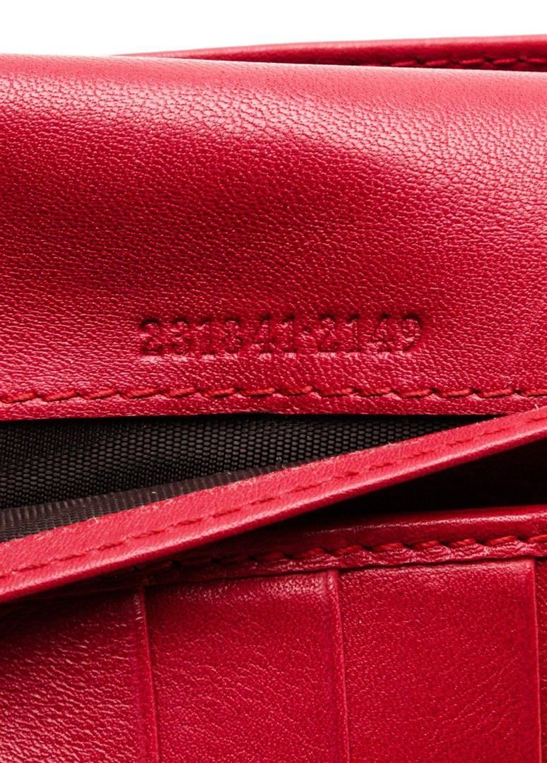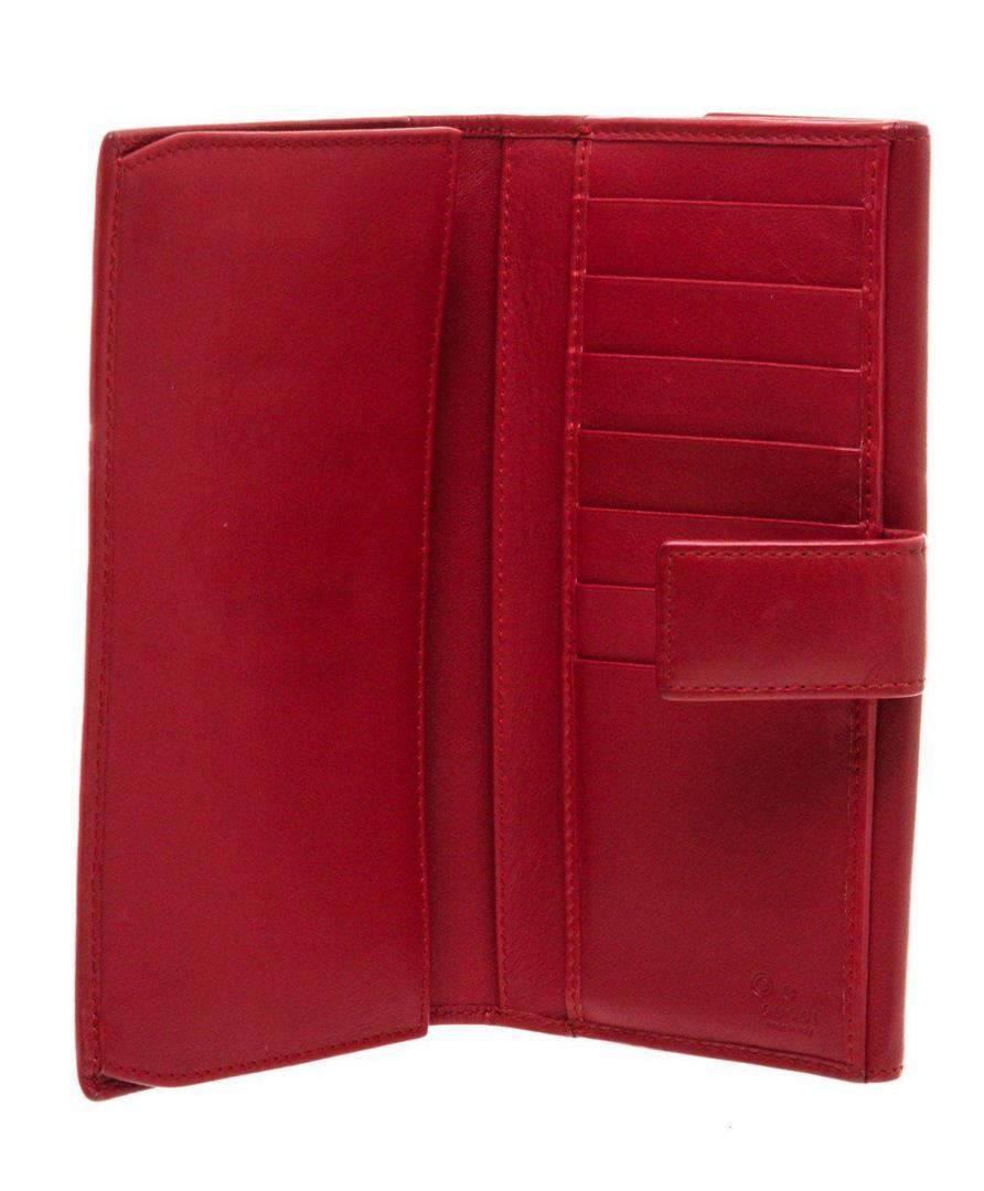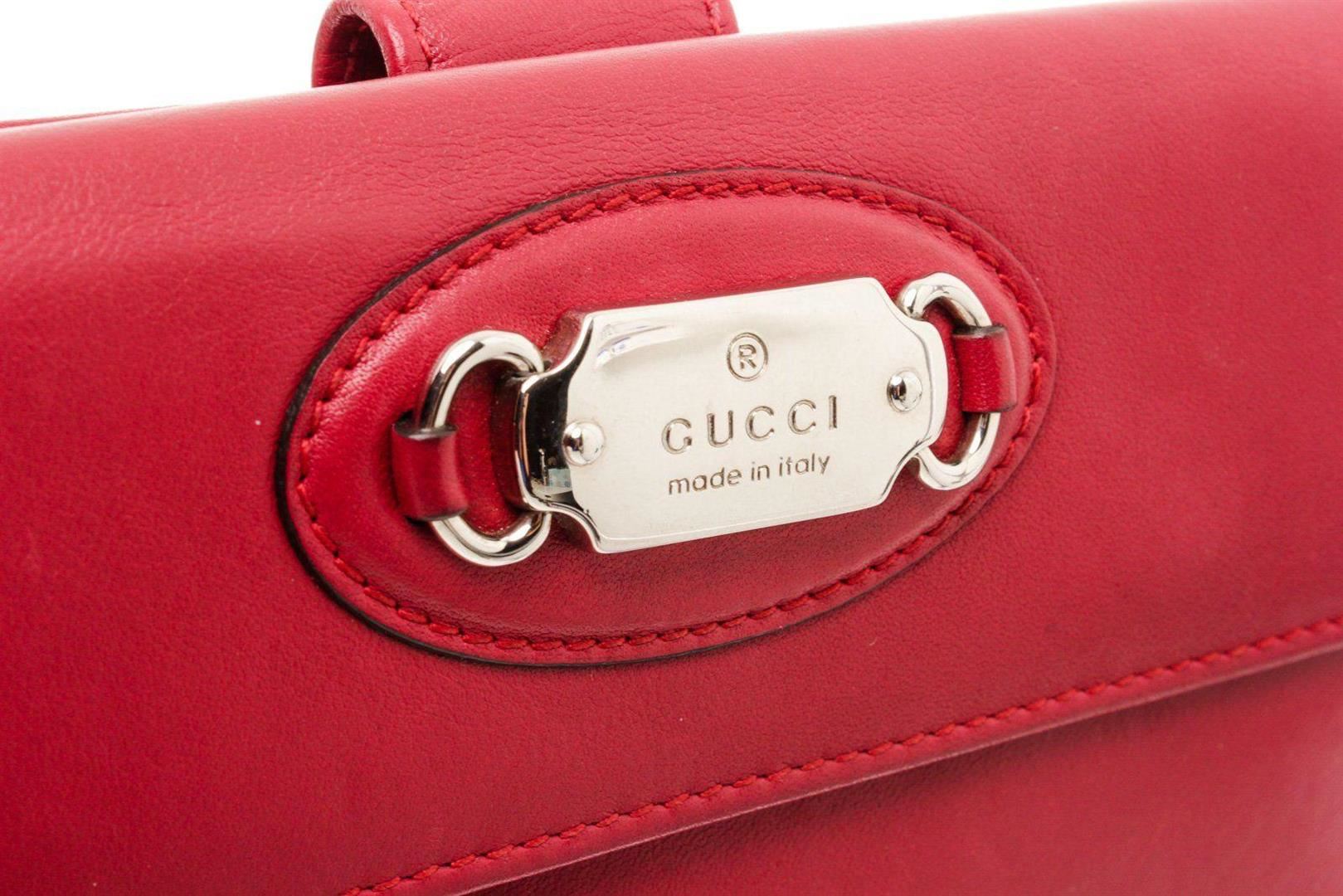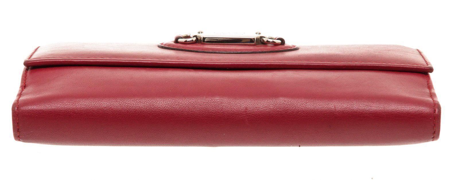 Gucci red leather continental wallet with silver-tone hardware, four bill pockets, seven card holders, large change pocket, snap closure. Measurements: Length: 7.5 in / 19 cm Width: 1 in / 3 cm 4 in / 10 cm Condition: Pre-Owned Good overall, please see photographs for detail.